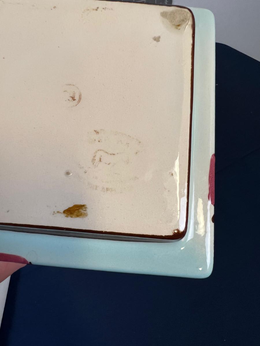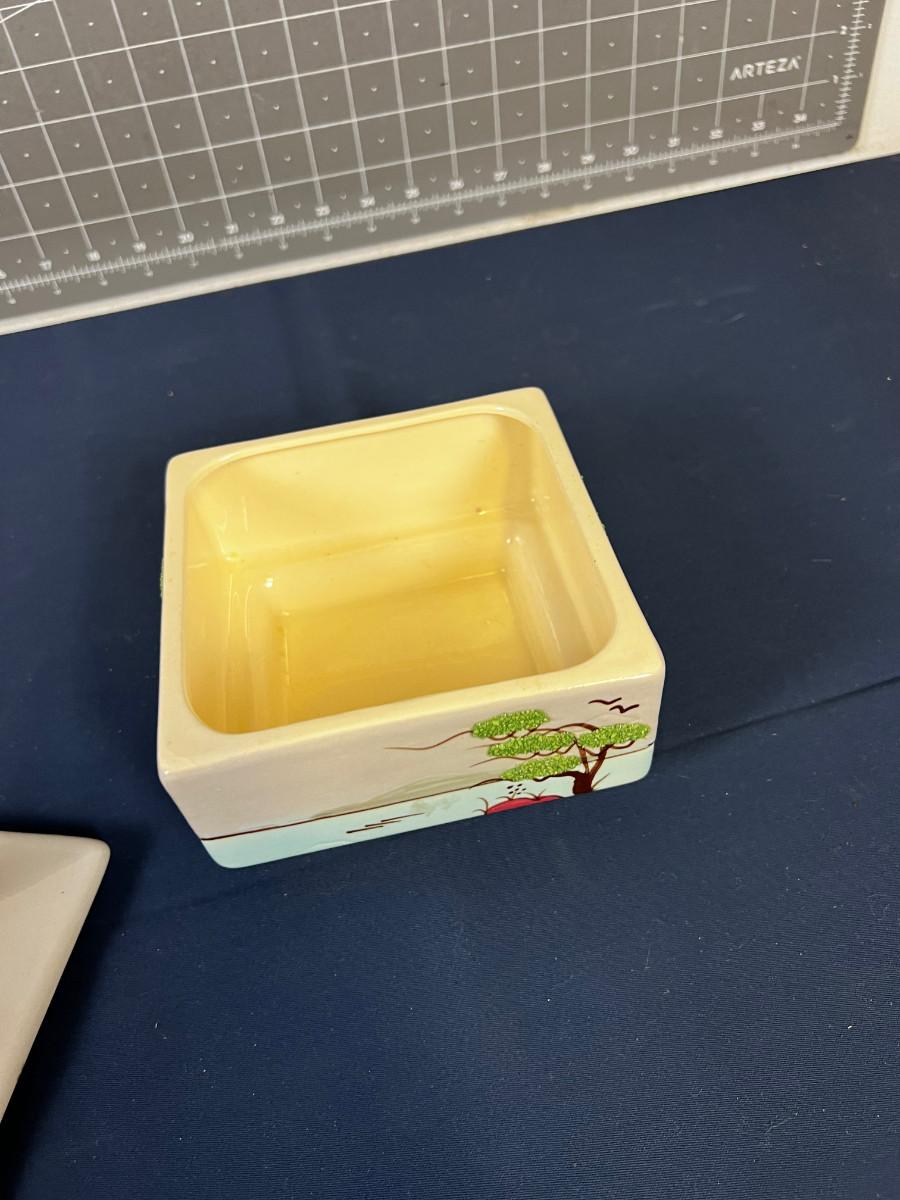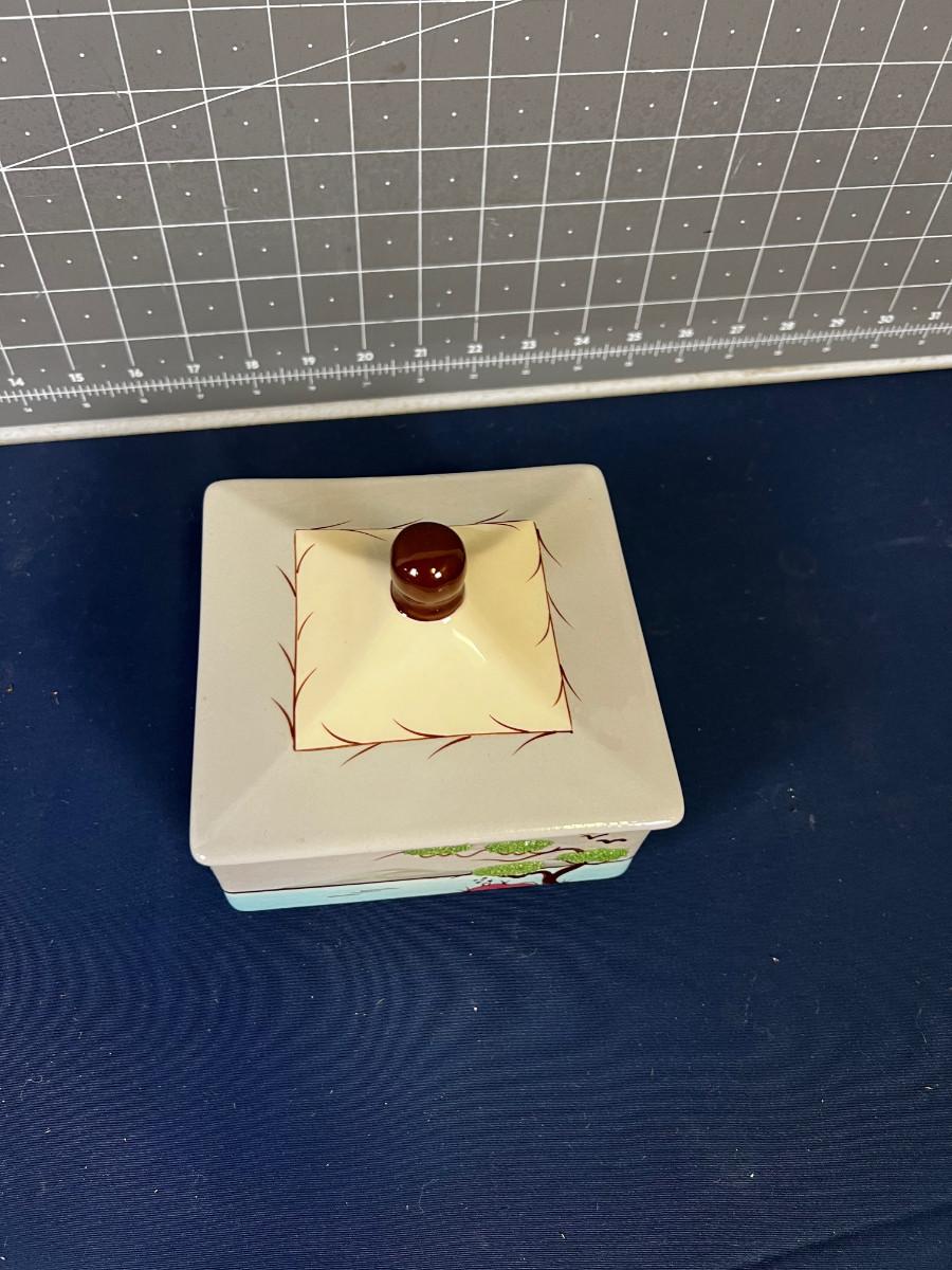 5" X 5" Unique Good Condition. Has lid that is matching.
