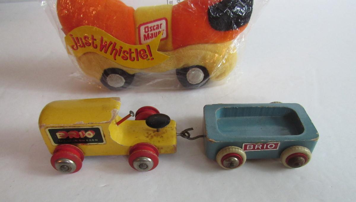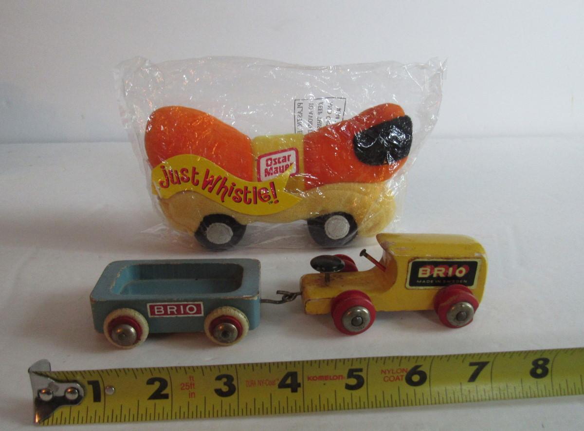 Weiner is MIP, wood car has minor wear. Shipping is available at actual shipping cost plus $5.00 handling fee per box for supplies/labor. See our terms for details. All sales are final. Condition notes may not be all inclusive, we may miss some issues as most vintage items are not in mint condition and have some degree of wear, paint loss, etc, but we always try to note obvious damage.