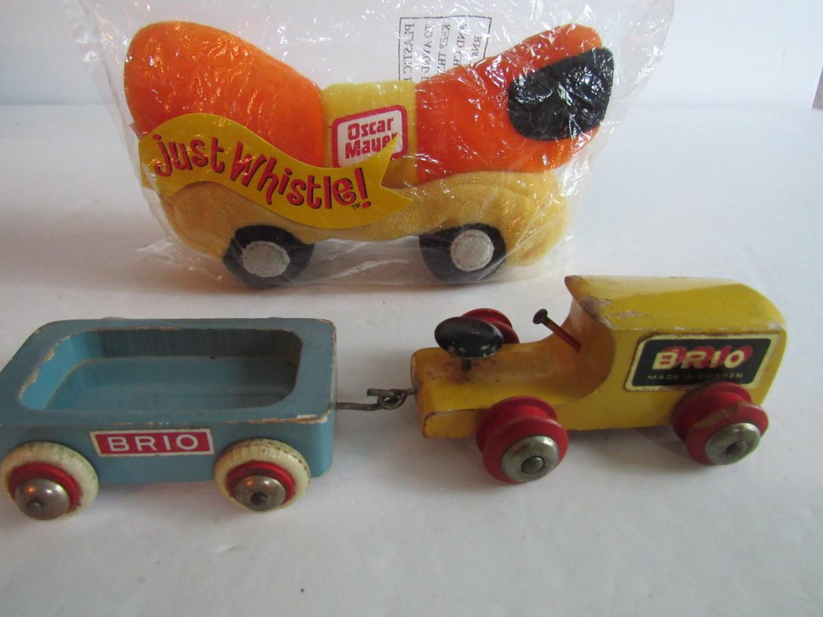 Weiner Mobile Plush Bean Bag and Spanish Brio Wood Car