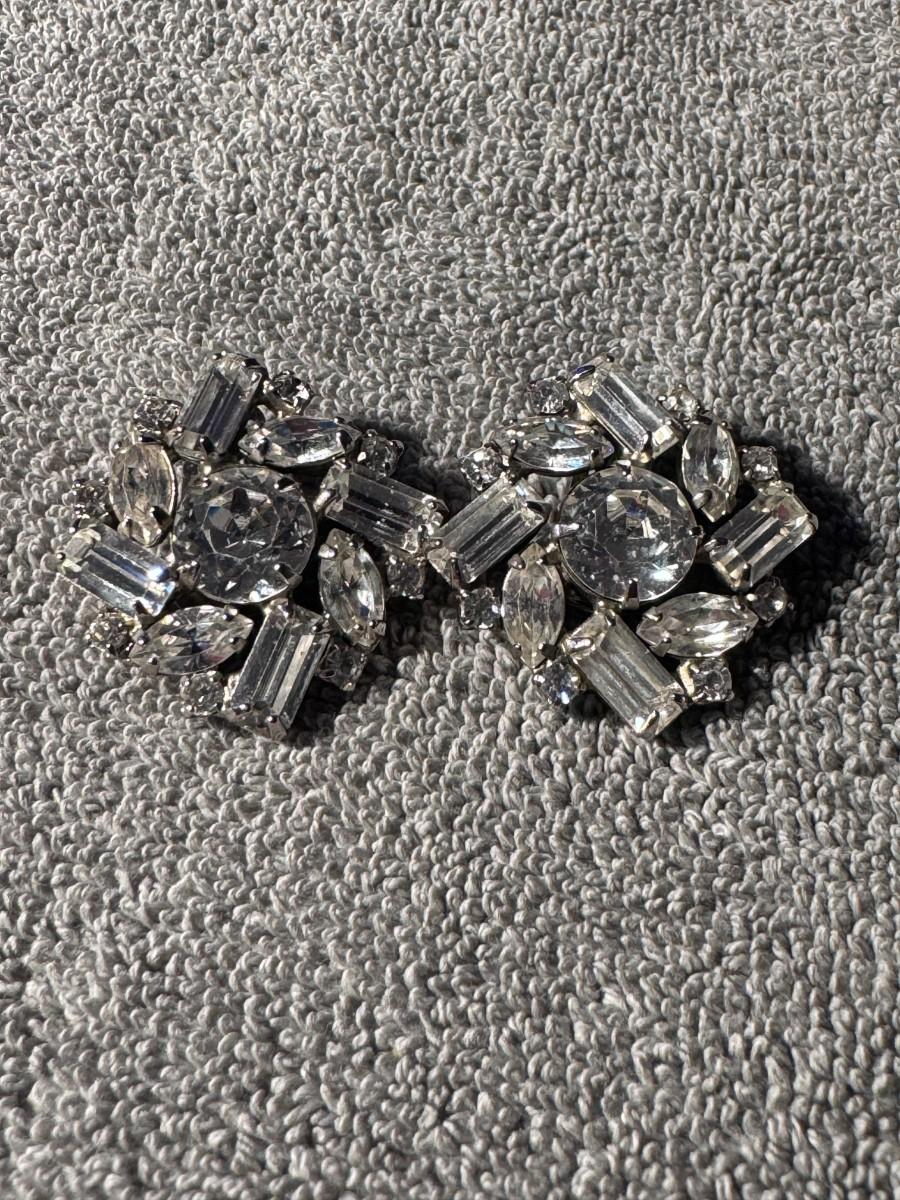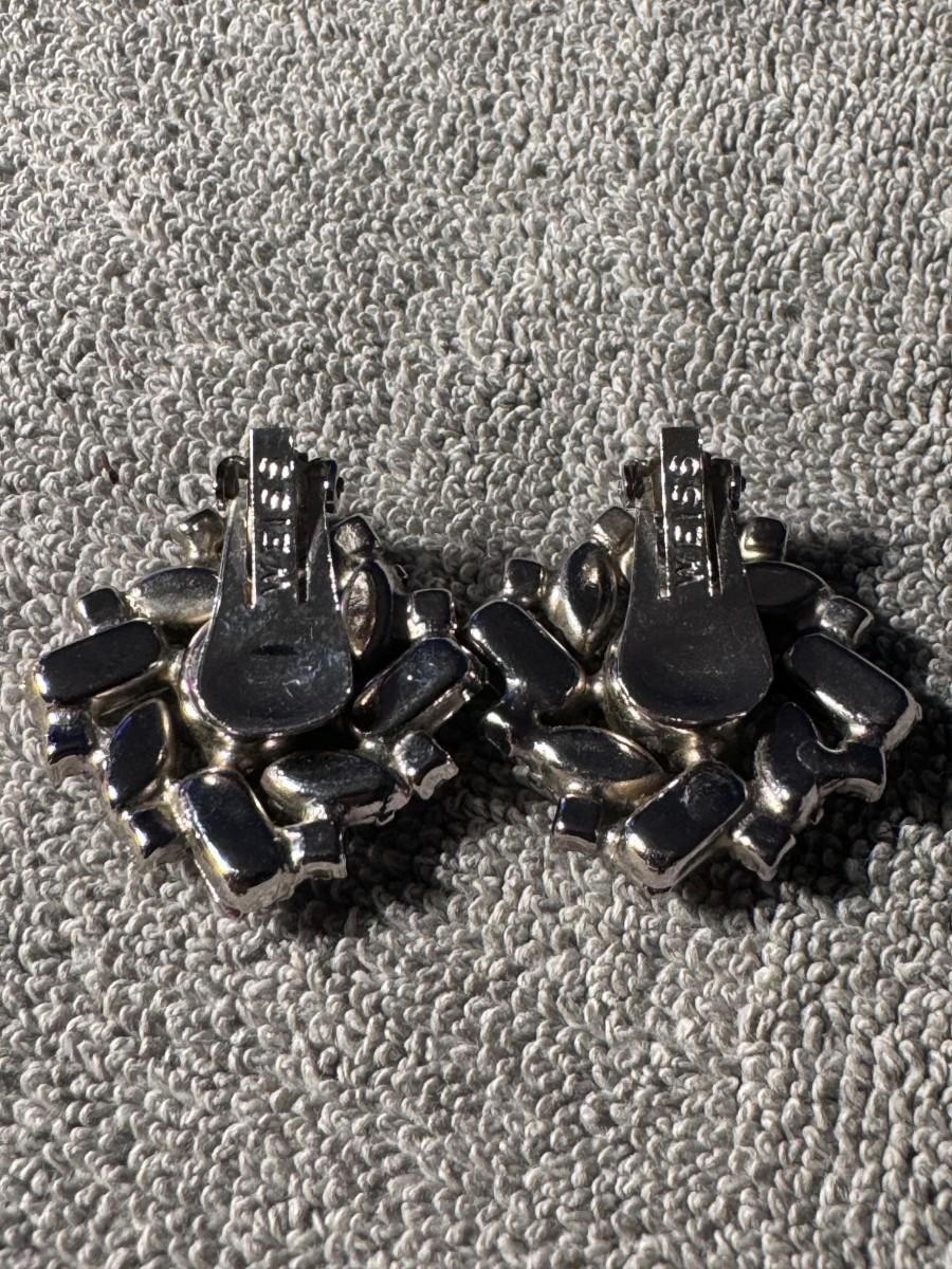 vintage rhinestone clip-on earrings, signed "WEISS" on the back of each clip mechanism.