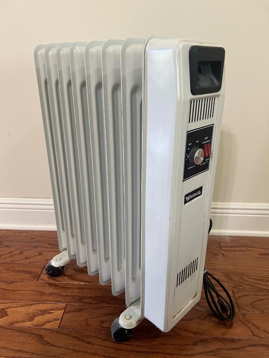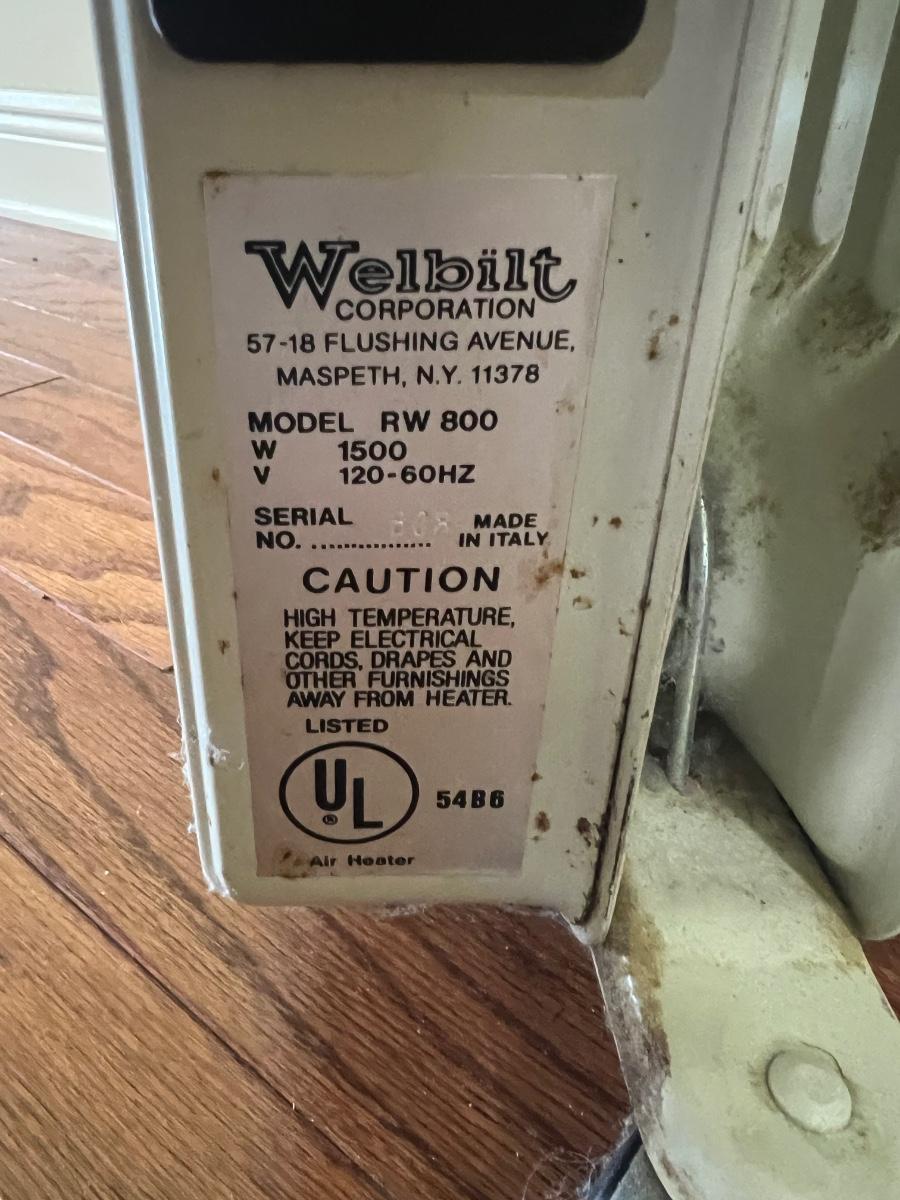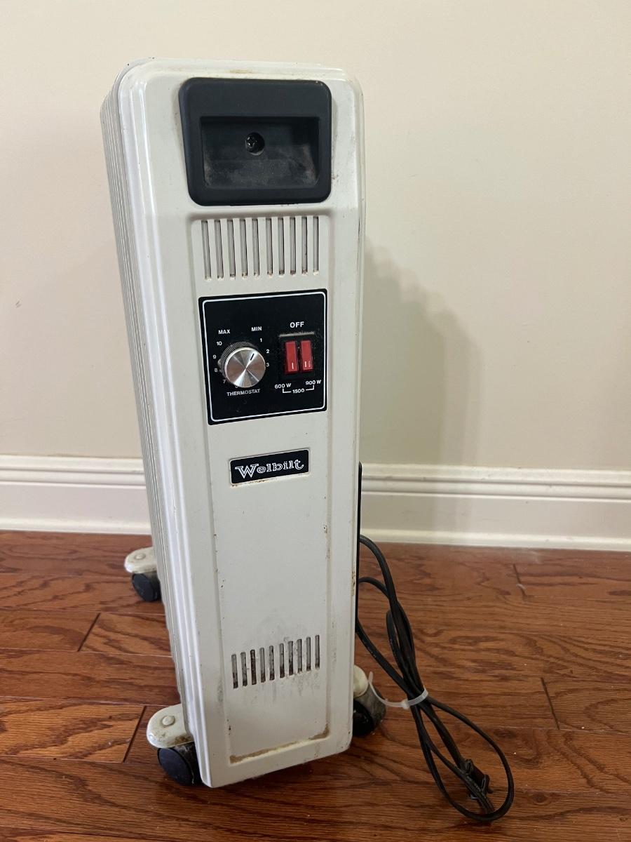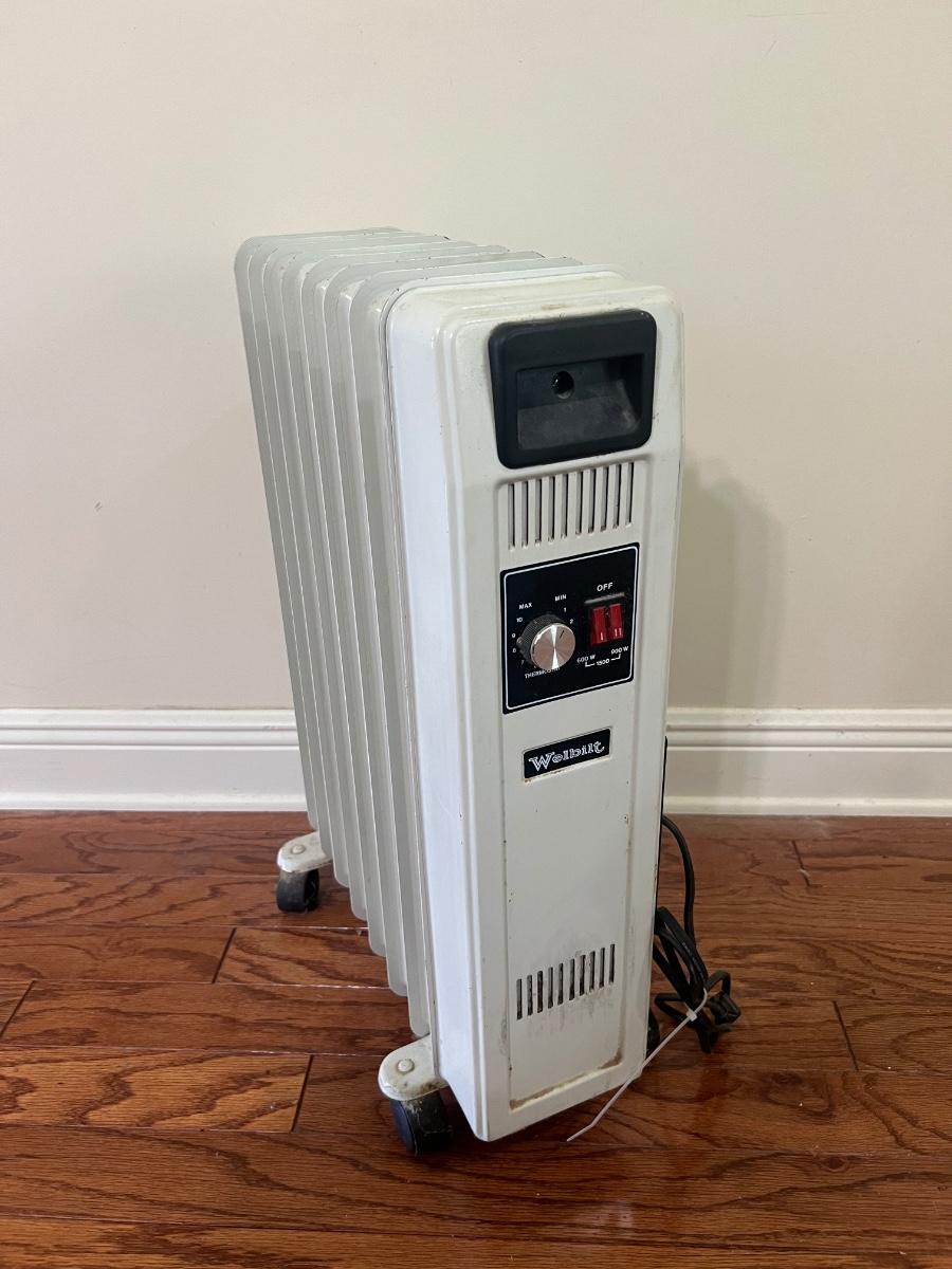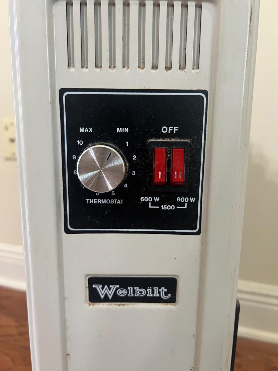 Welbilt Portable Radiator Heater Model RW 800. Measures 25 inches tall and 17 inches deep. Plugged in and tested, works.