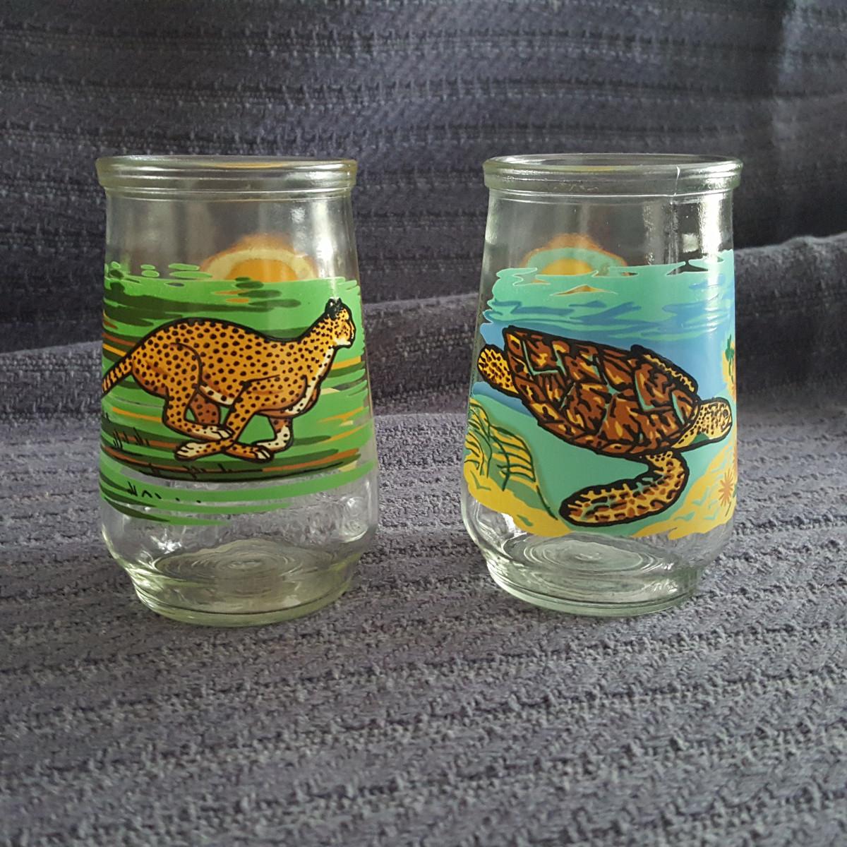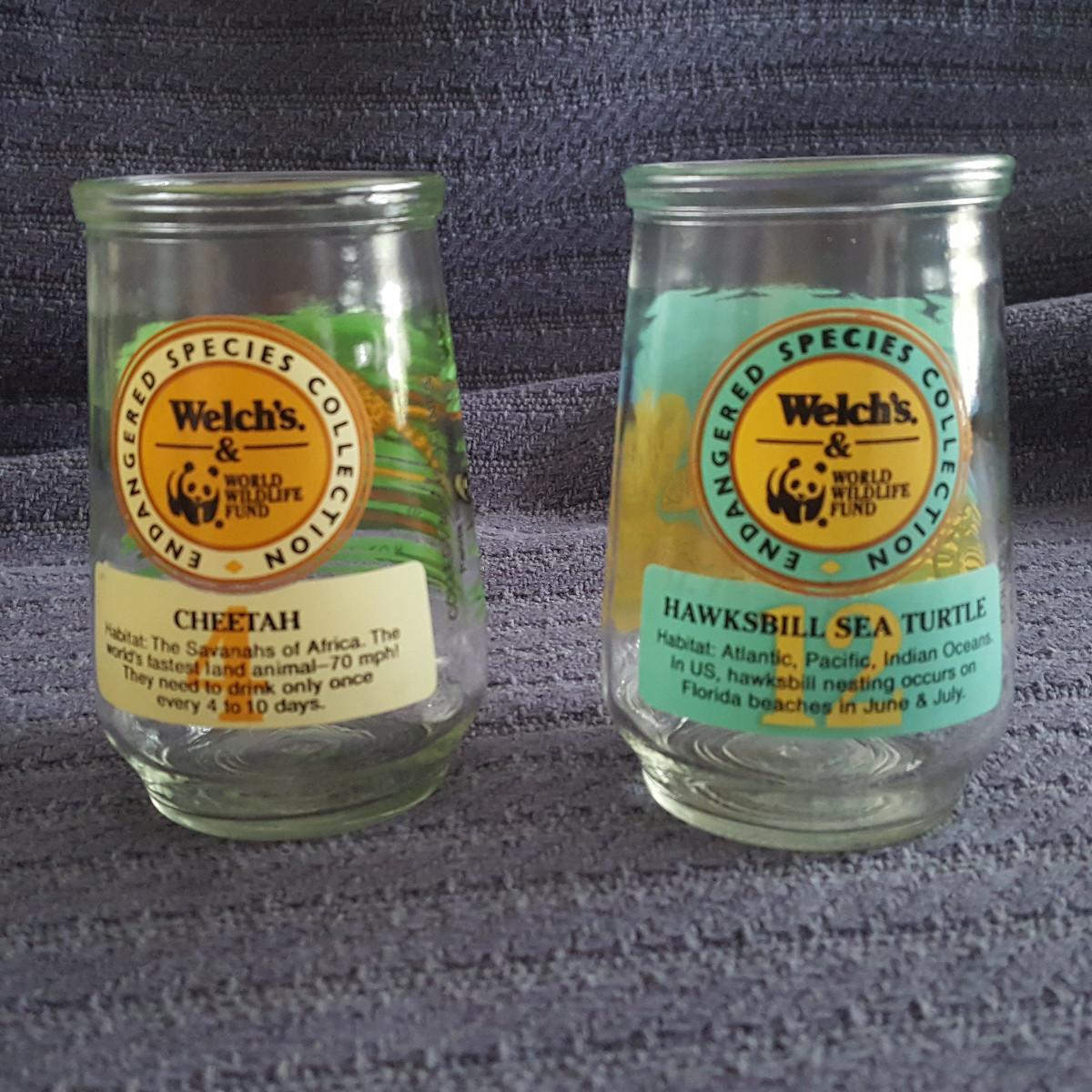 This auction lot is for a pair of Welch's Endangered Species Glasses. These highly sought collector's glasses are fine examples of the genre. Here we offer the Cheetah Glass and the Hawksville Sea Turtle Glass. If you need these for your collection or want to start the collection of 12 - here is your opportunity. See photos for sizing.