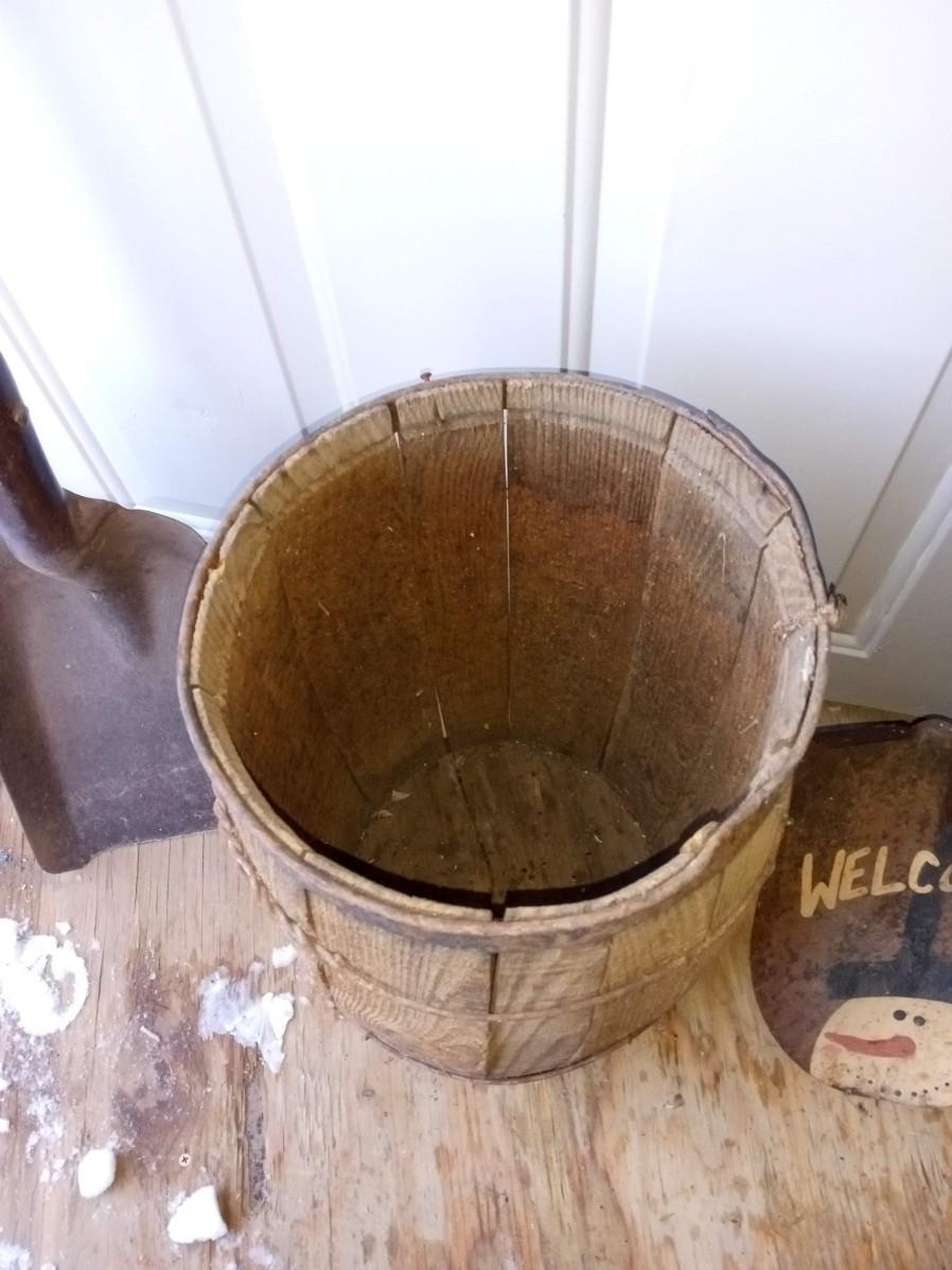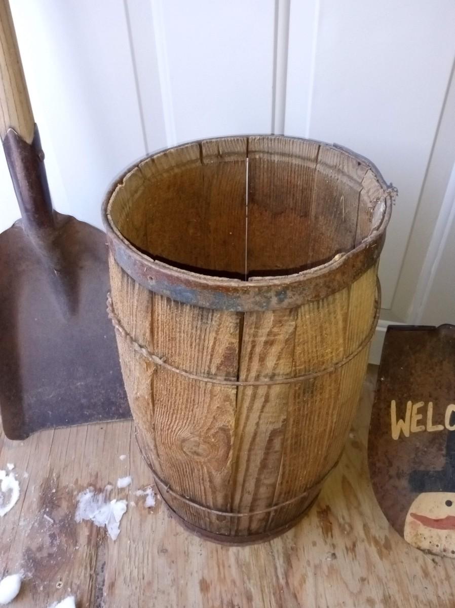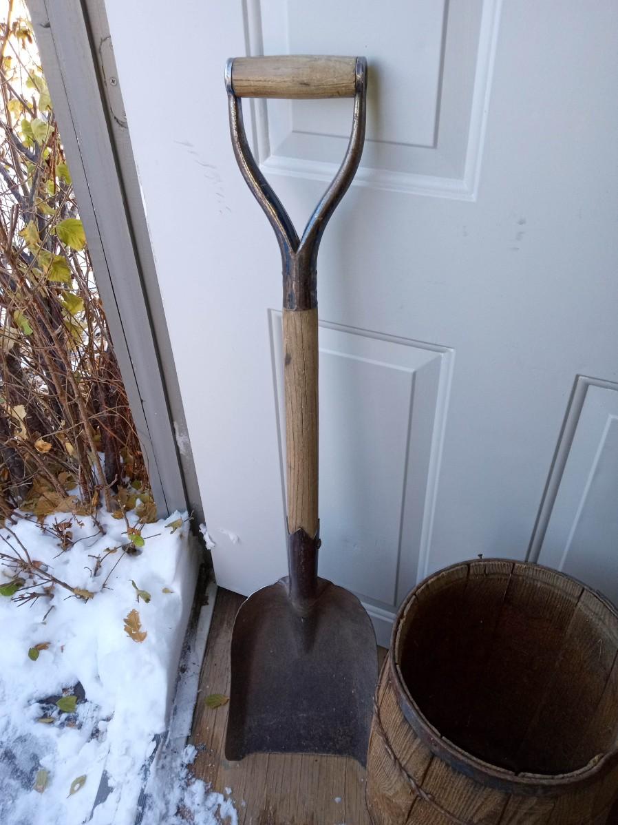 WELCOME SHOVEL, SMALL WHISKEY BARREL AND SQUARE SHOVEL