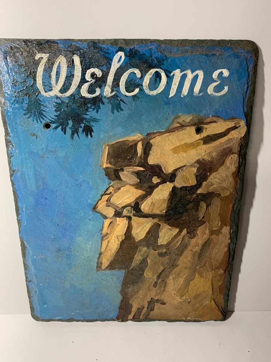 Handpainted man of the mountain welcome sign Handpainted on slate