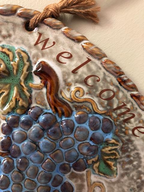 Welcome sign with grapes