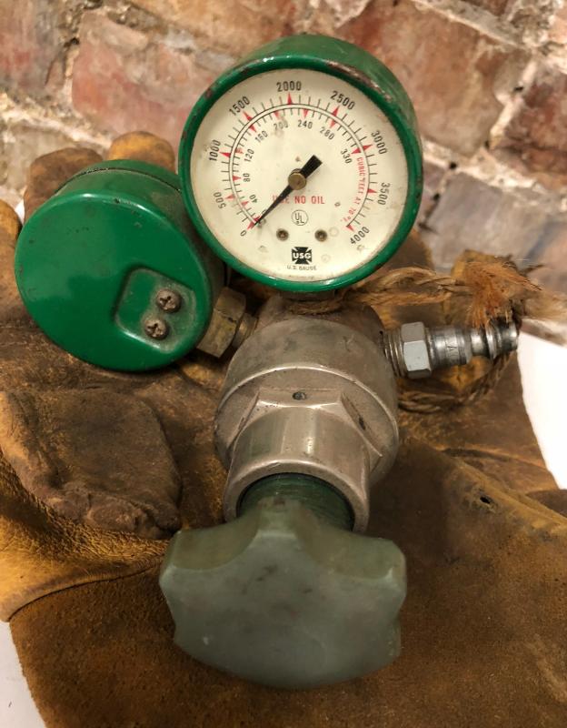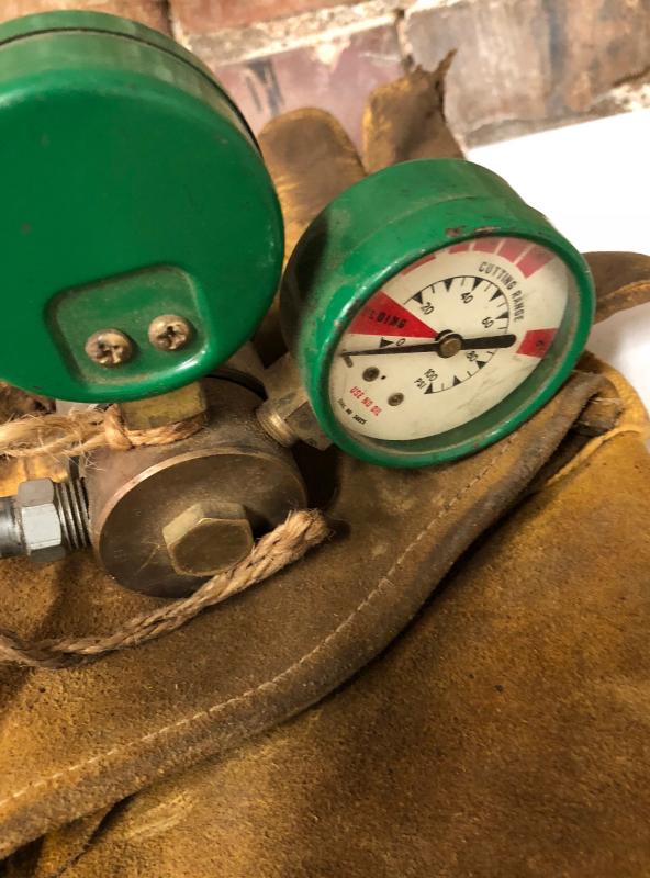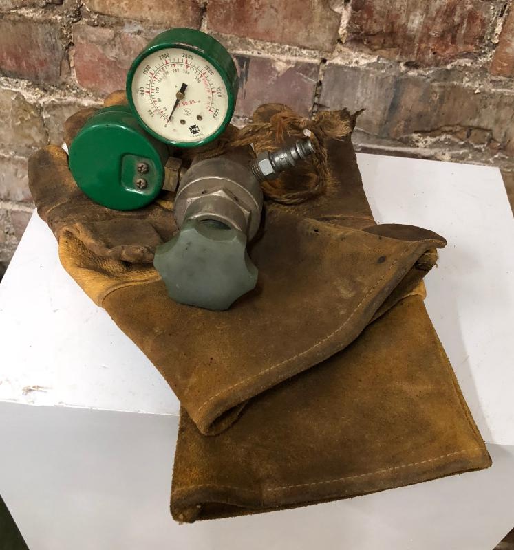 Leather welding gloves and the gauge shown in this lot...Good used condition...