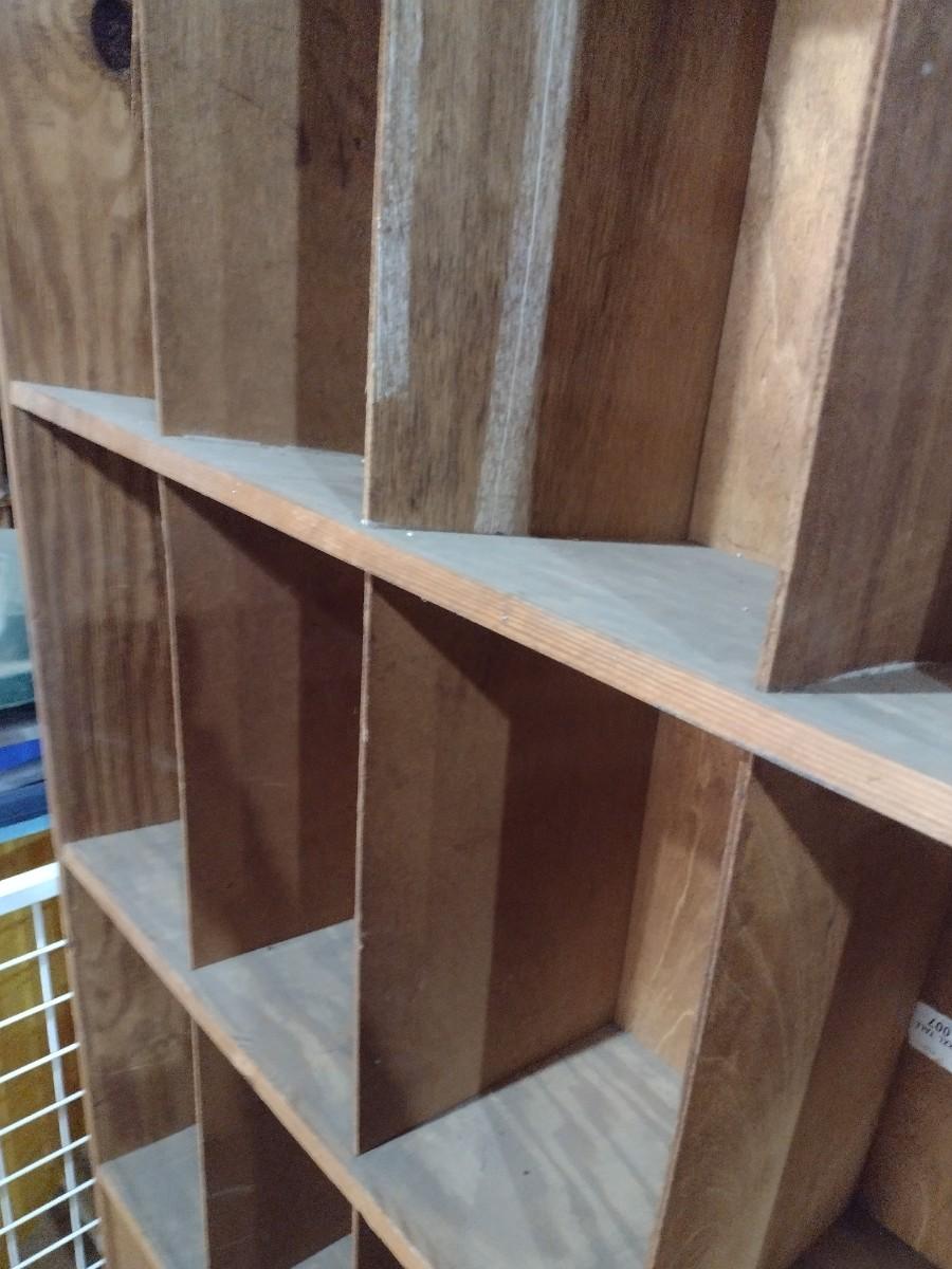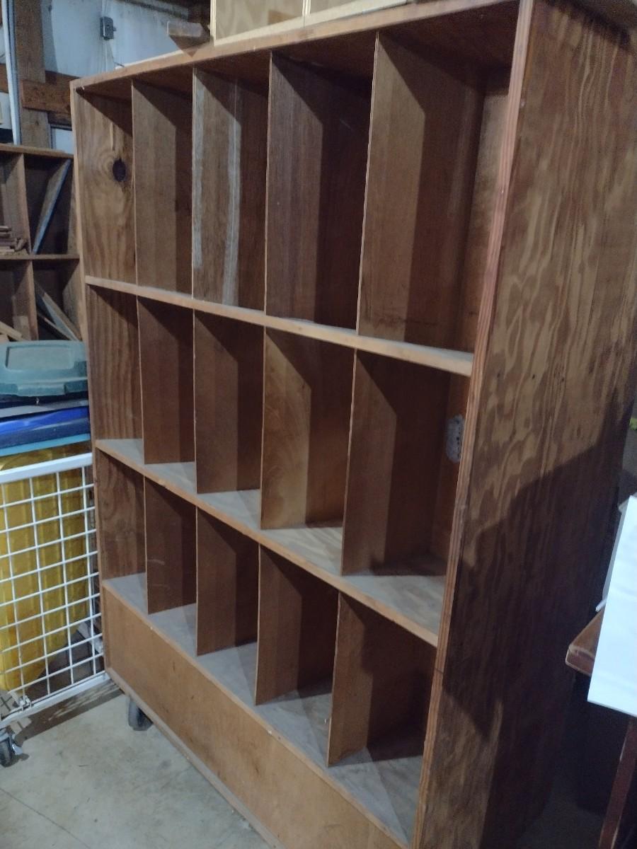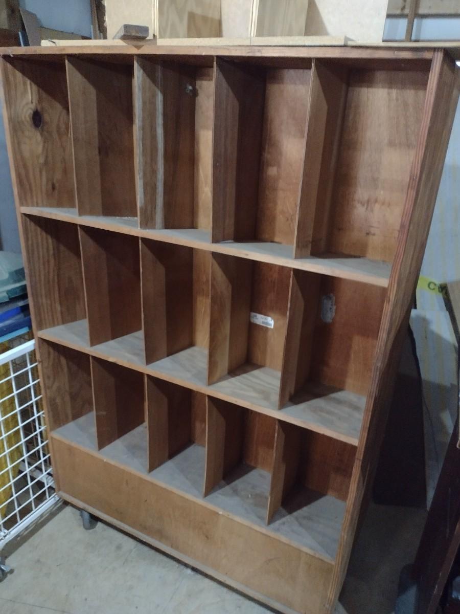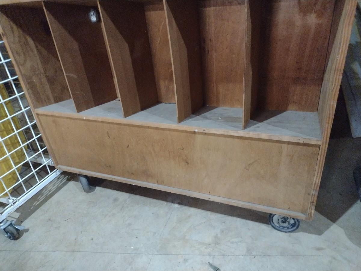 Well Built Custom Crafted Solid Wood Double Sided Open Storage Cabinet with Dividers on Wheels Choice A, No Contents