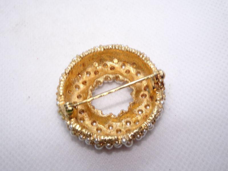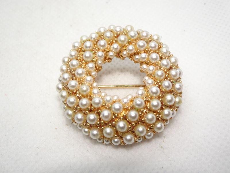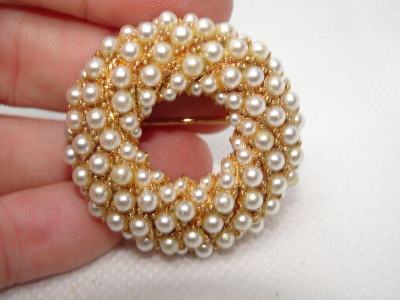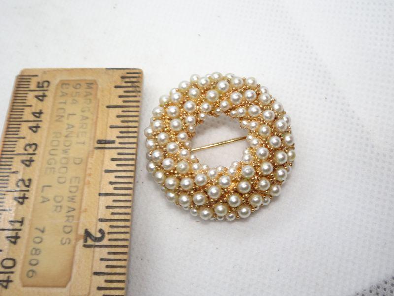 Well Made Gold Tone Seed Pearl Donut Shape Brooch, Elegant!