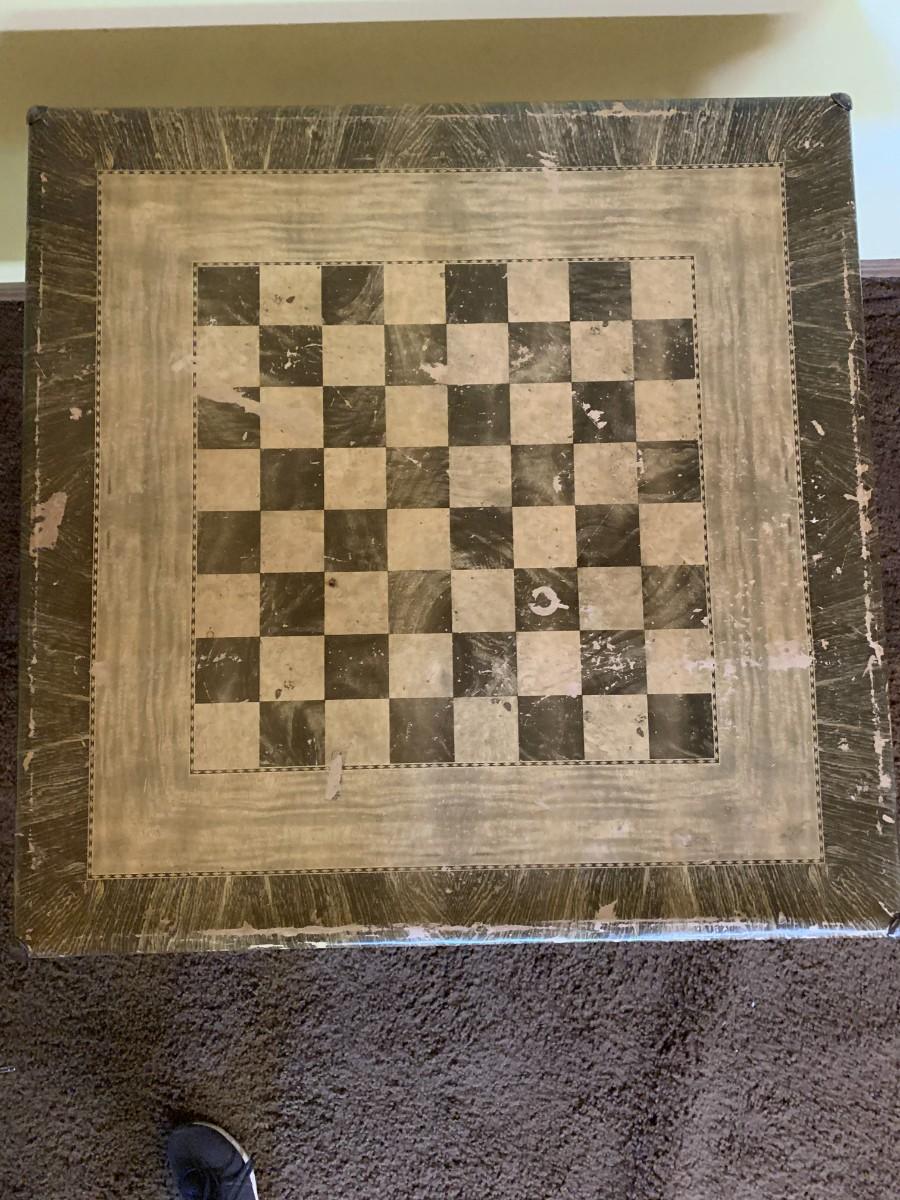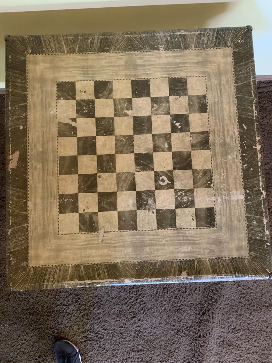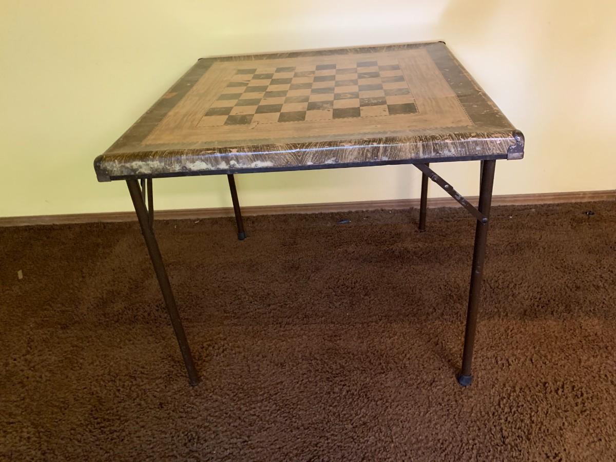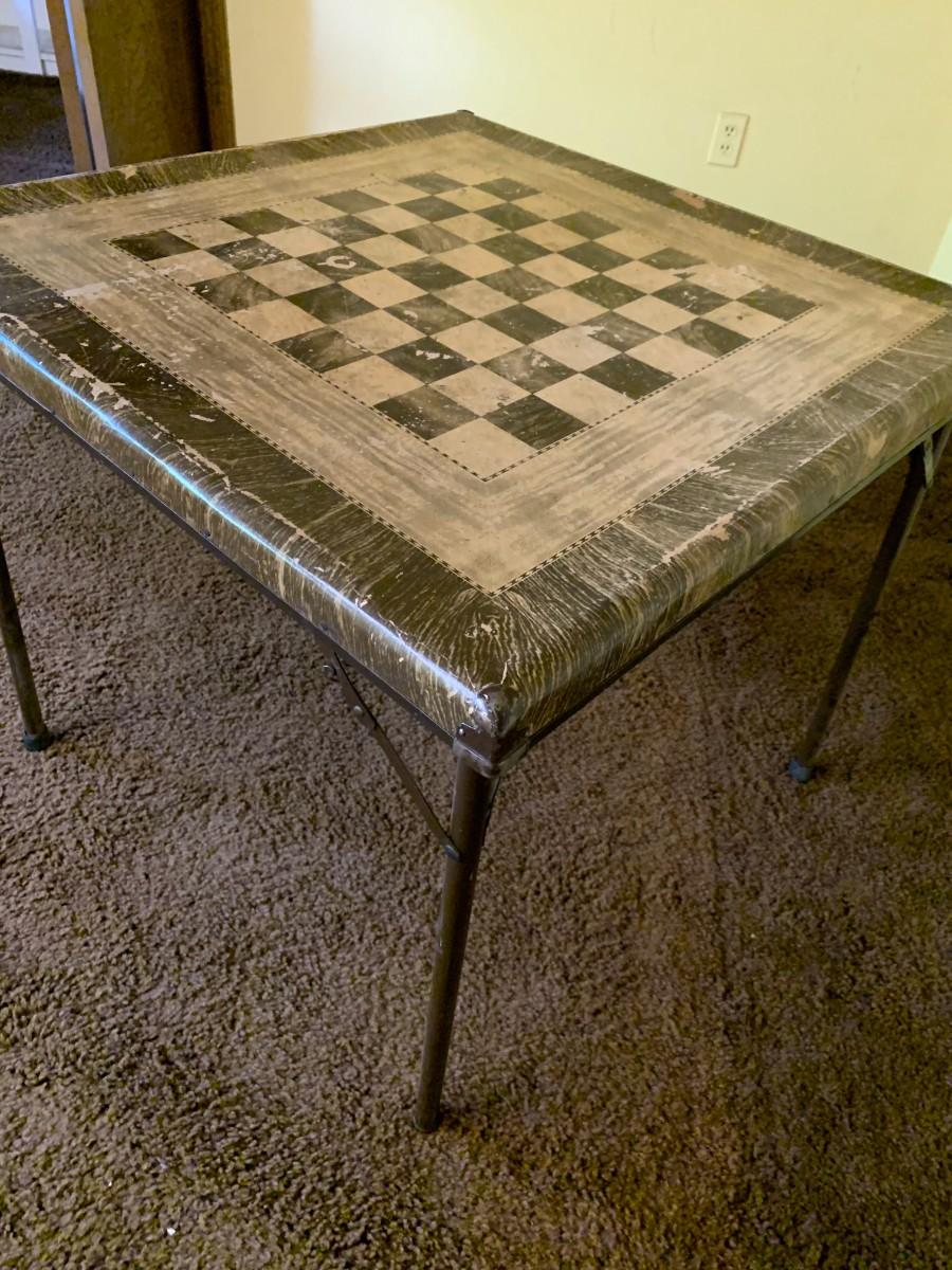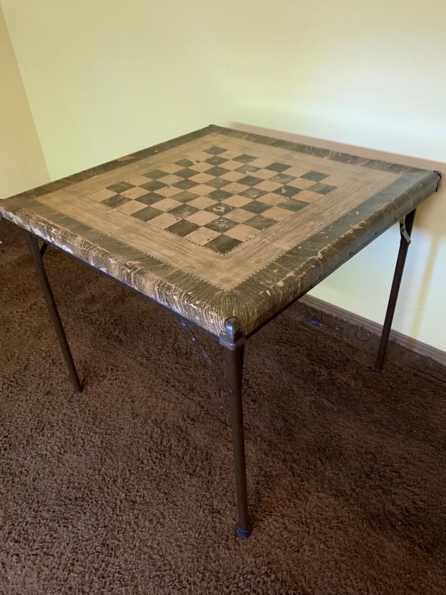 Well used vintage checker board card table