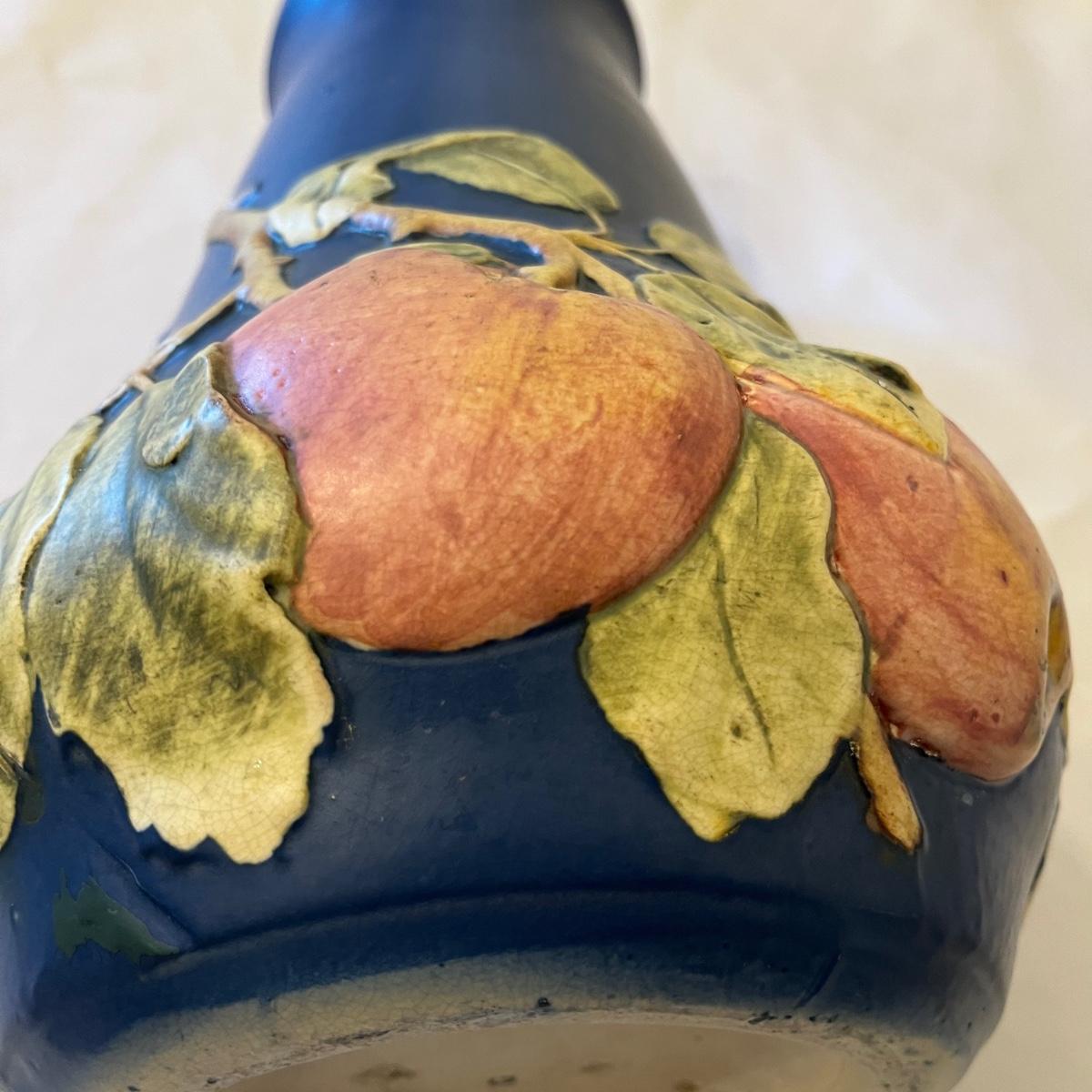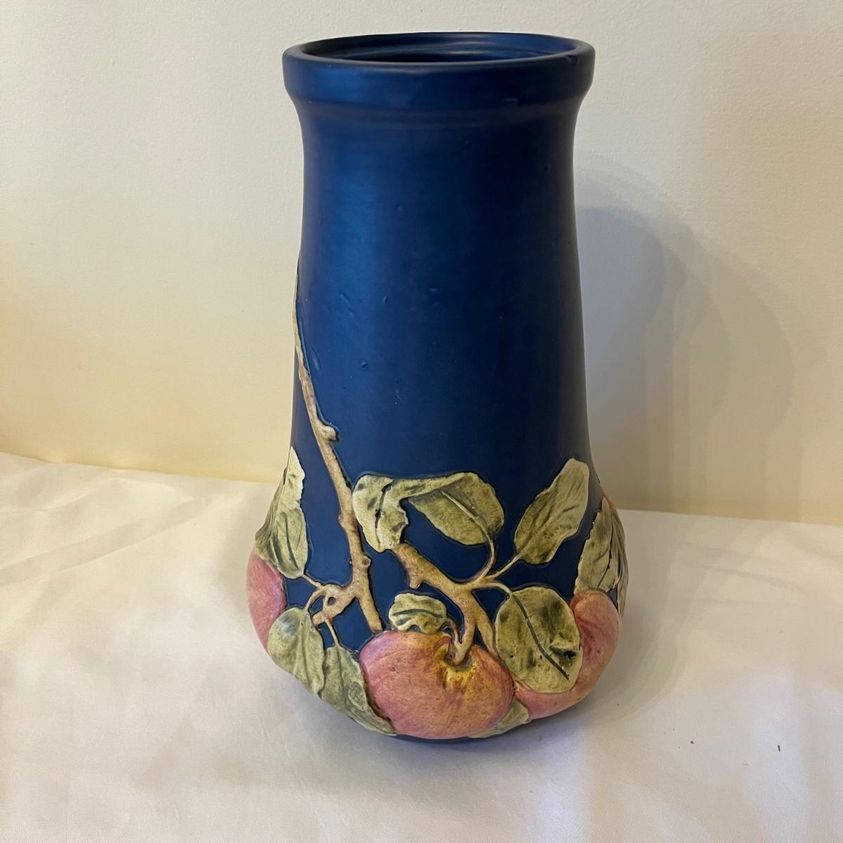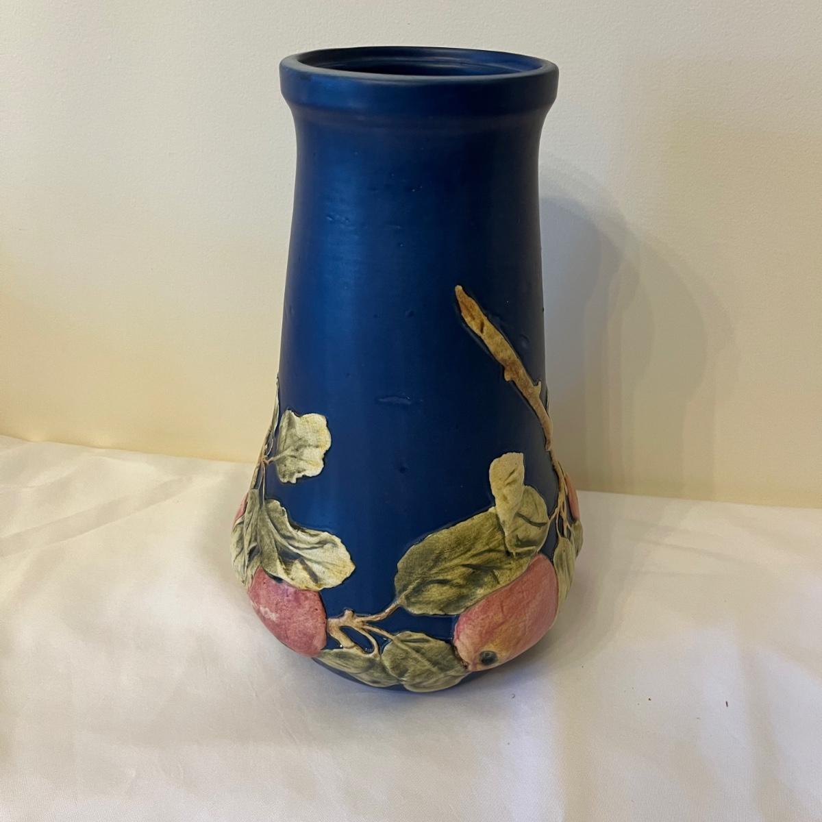 Weller Baldwin large apple tree vase that measures 8”D x 13” tall. Vase has a small production flaw, see pictures.