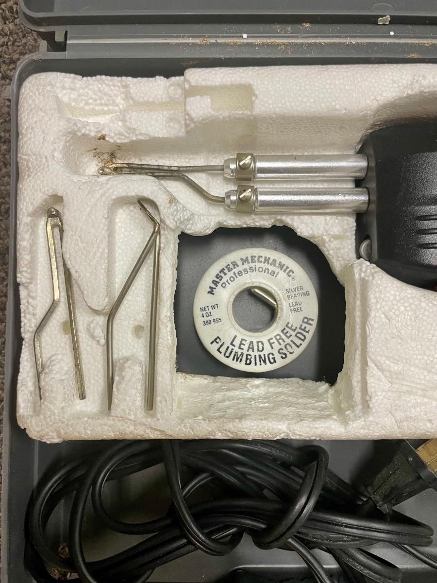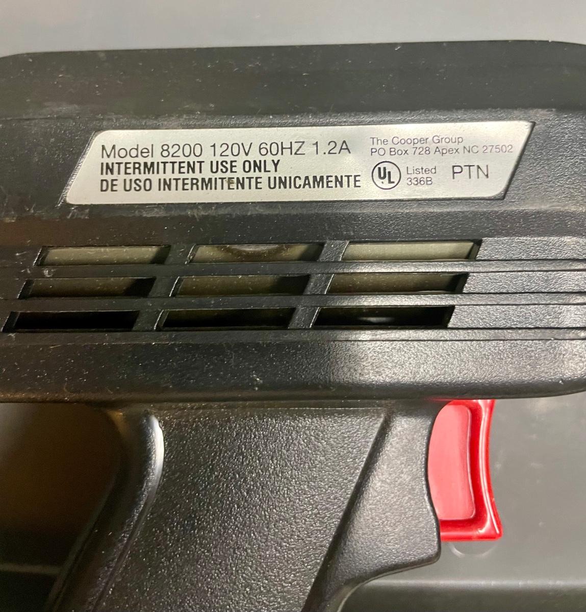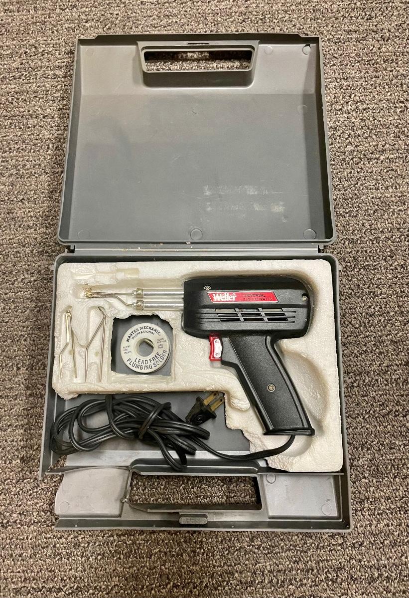 Weller Model 8200 soldering gun. Includes case, 2 extra soldering tips, and a roll of solder. Tested, works as expected.
