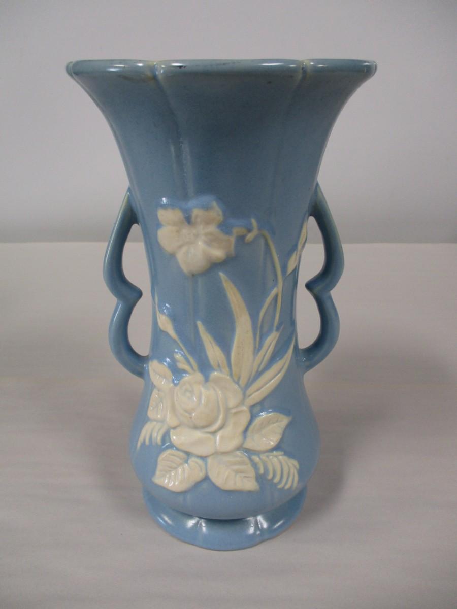 Vintage Weller Pottery Floral Double Handled Vase Signed