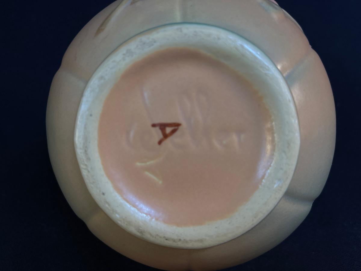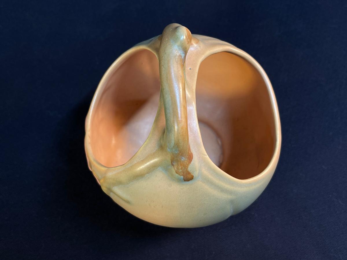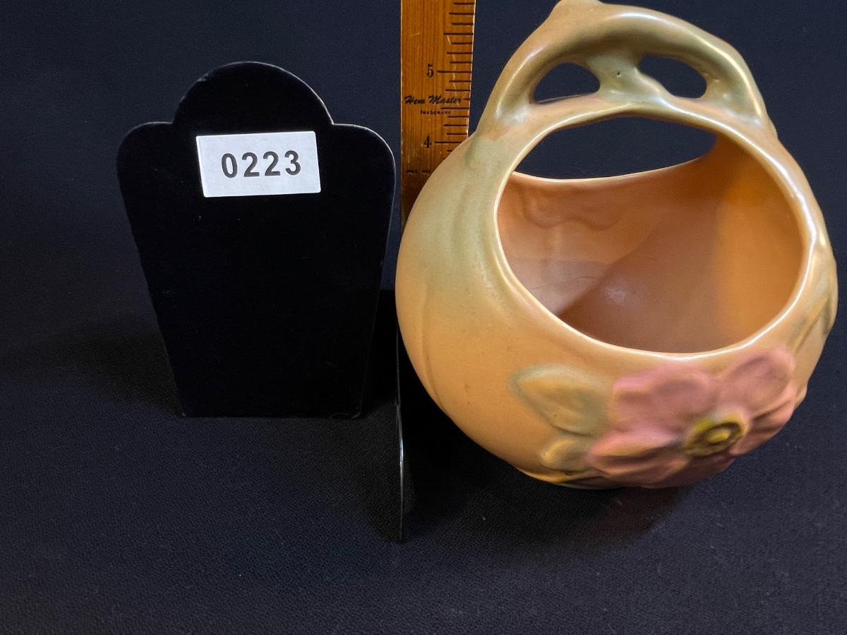 Weller Pottery Wild Rose Handled Basket with soft Arts Crafts glaze colors