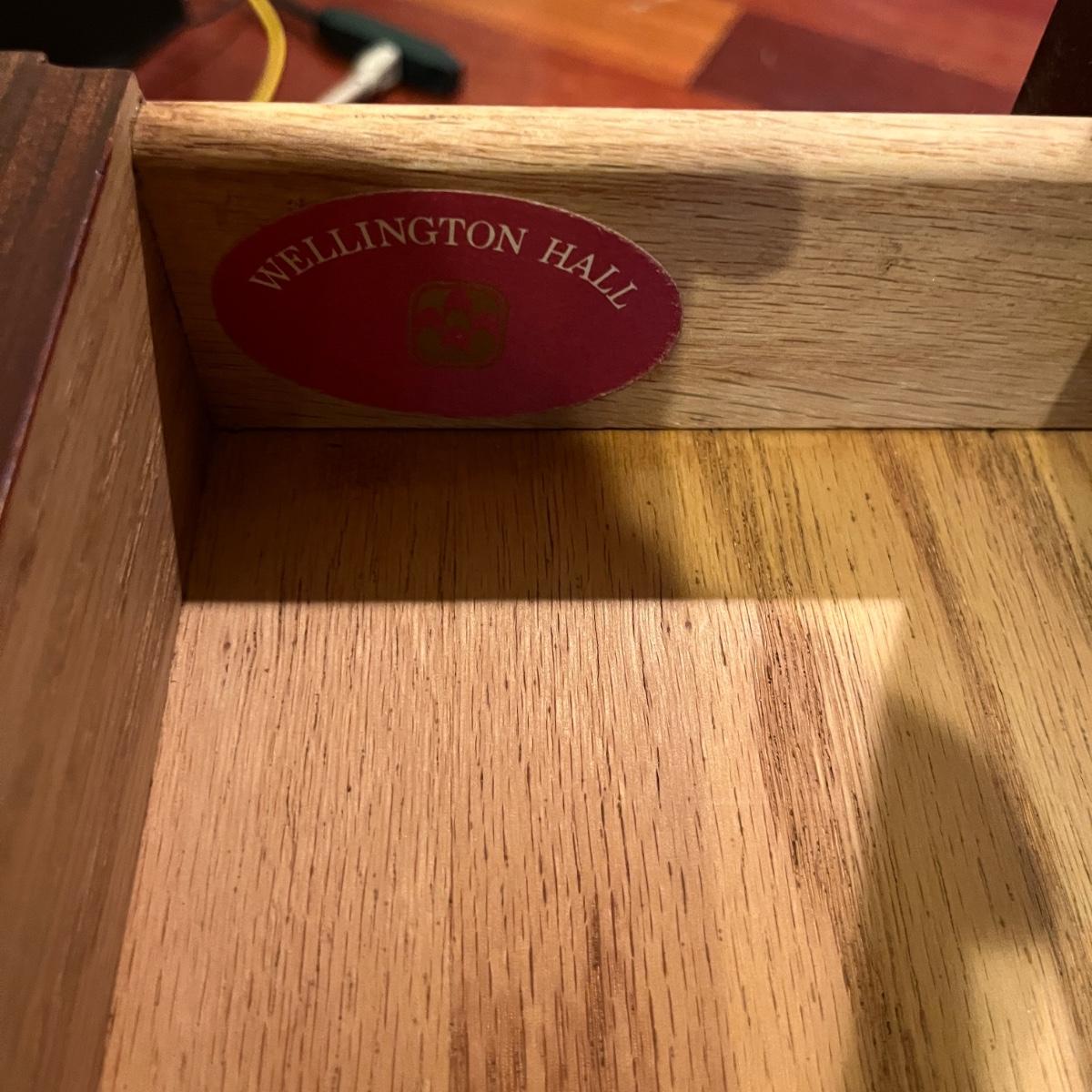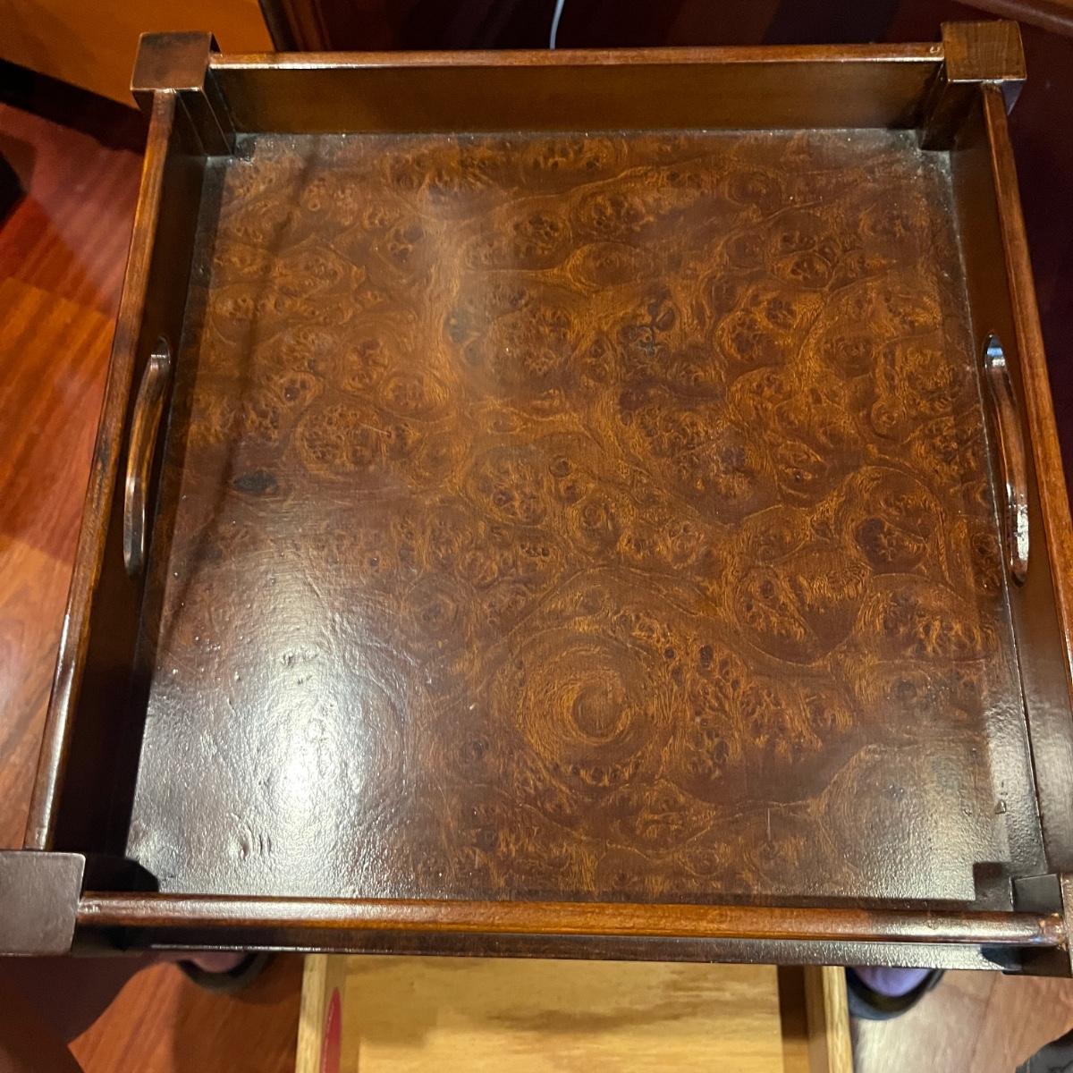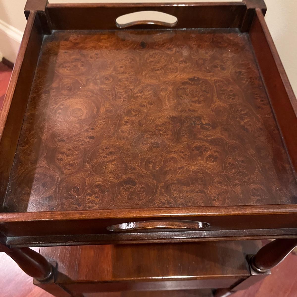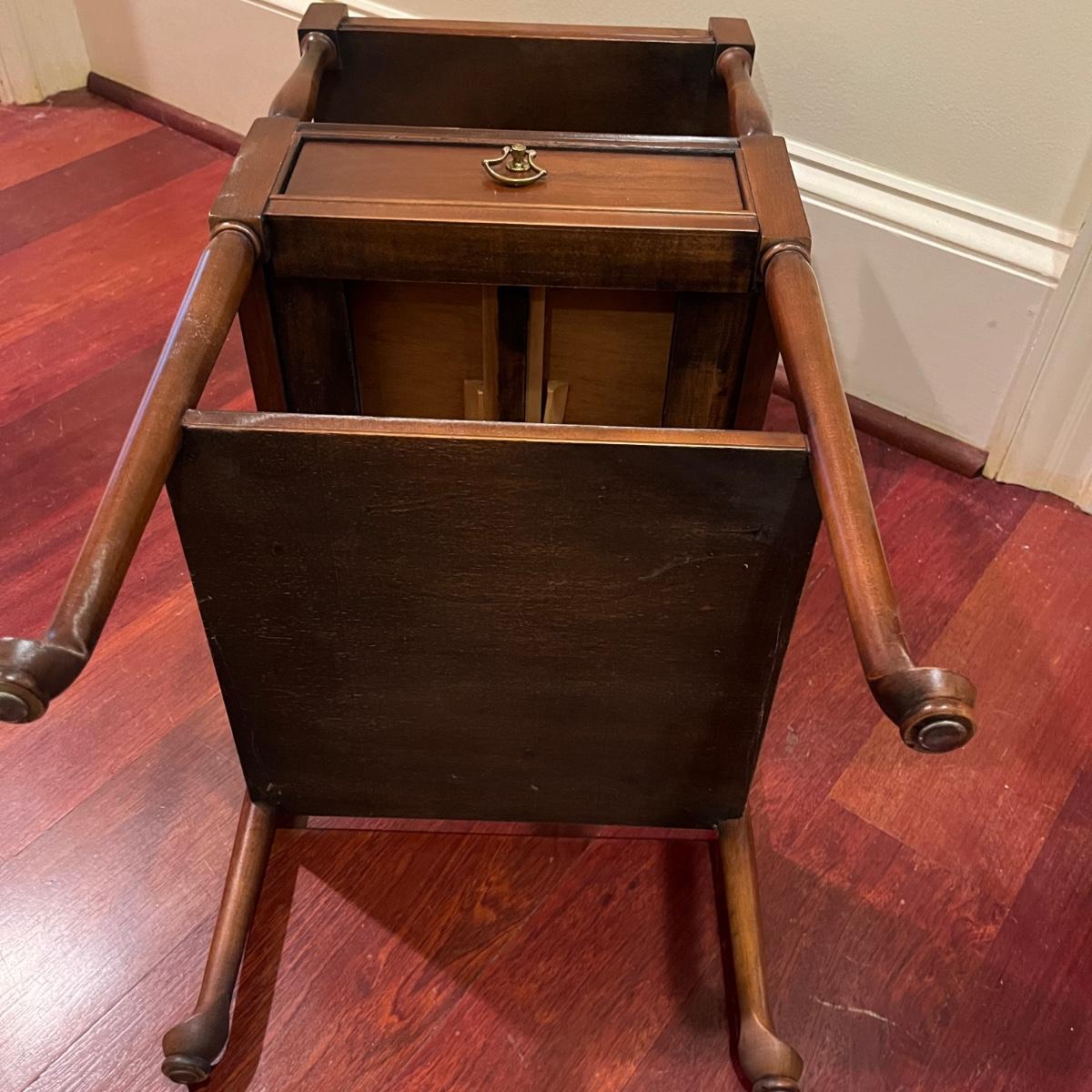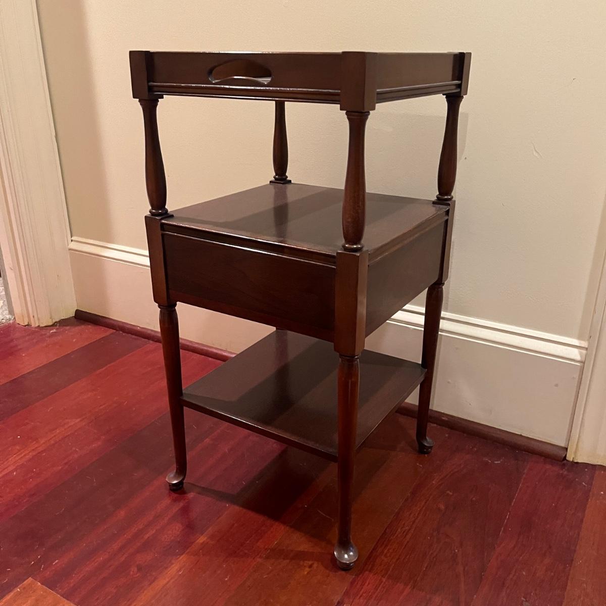 This Wellington Hall side has one dovetailed drawer and two shelves. Table measures 13” x 13” x 26”H.