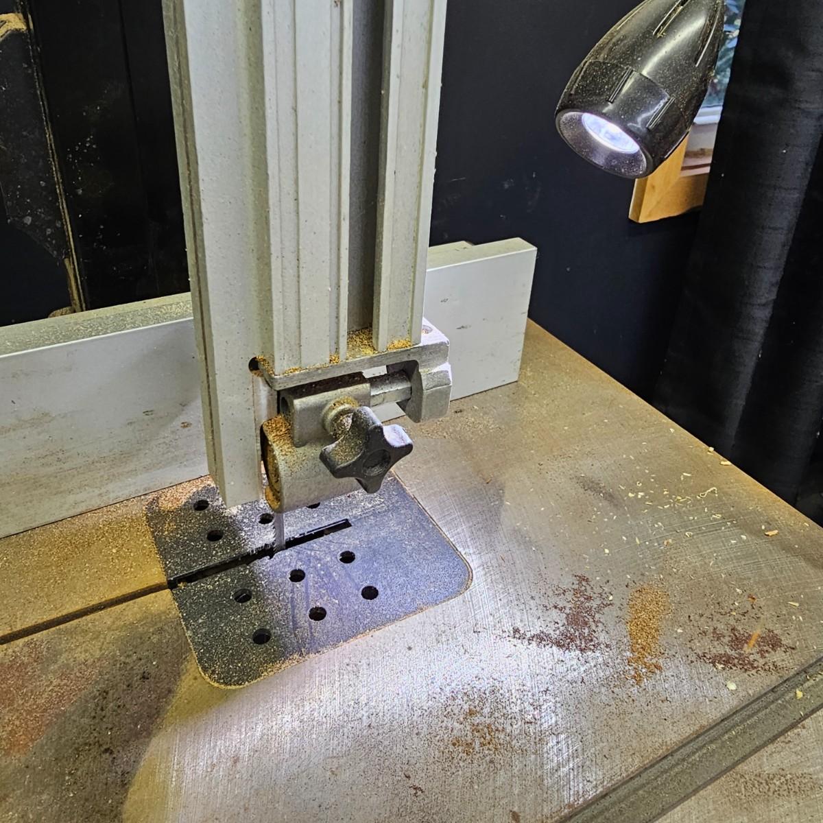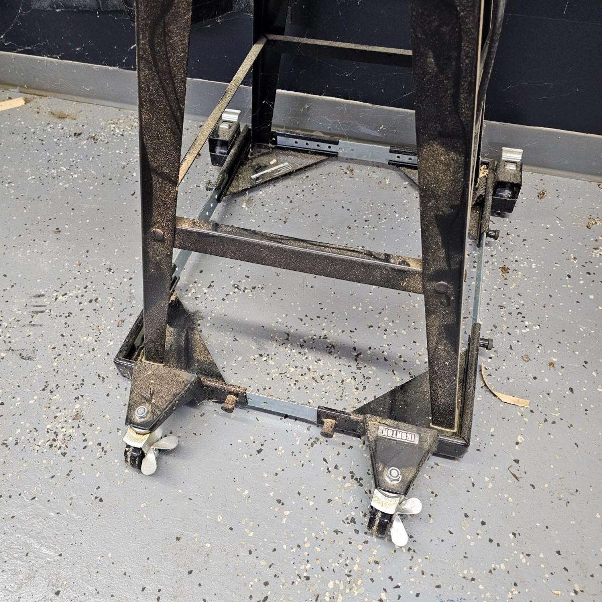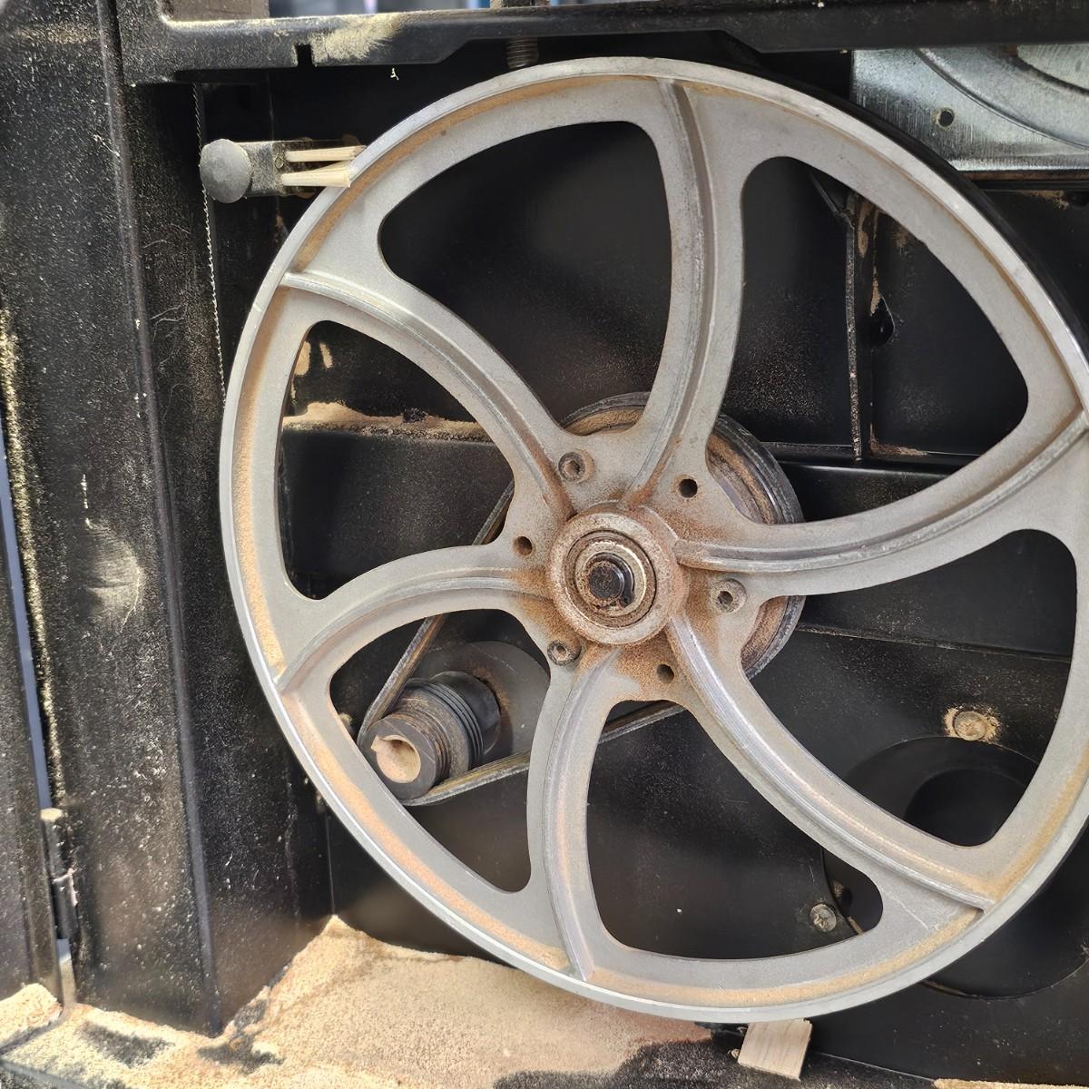 Wen brand 10" band saw on Ironton rolling stand with locking wheels. Saw has auxiliary light at cutting head, adjustable for speed and blade tension. Unit measures 24" x 31" x 59"H. Includes manual and three extra blades, one NIB. Unit and light powered on when plugged in. See photos for details. Local pickup only. Winning bidder must bring assistance to help move and load this item due to its weight and/or size.