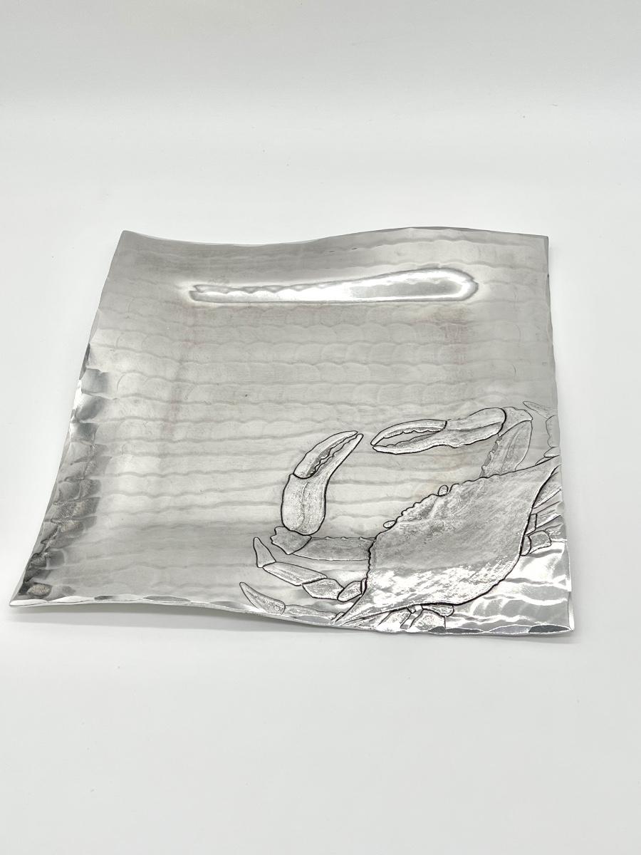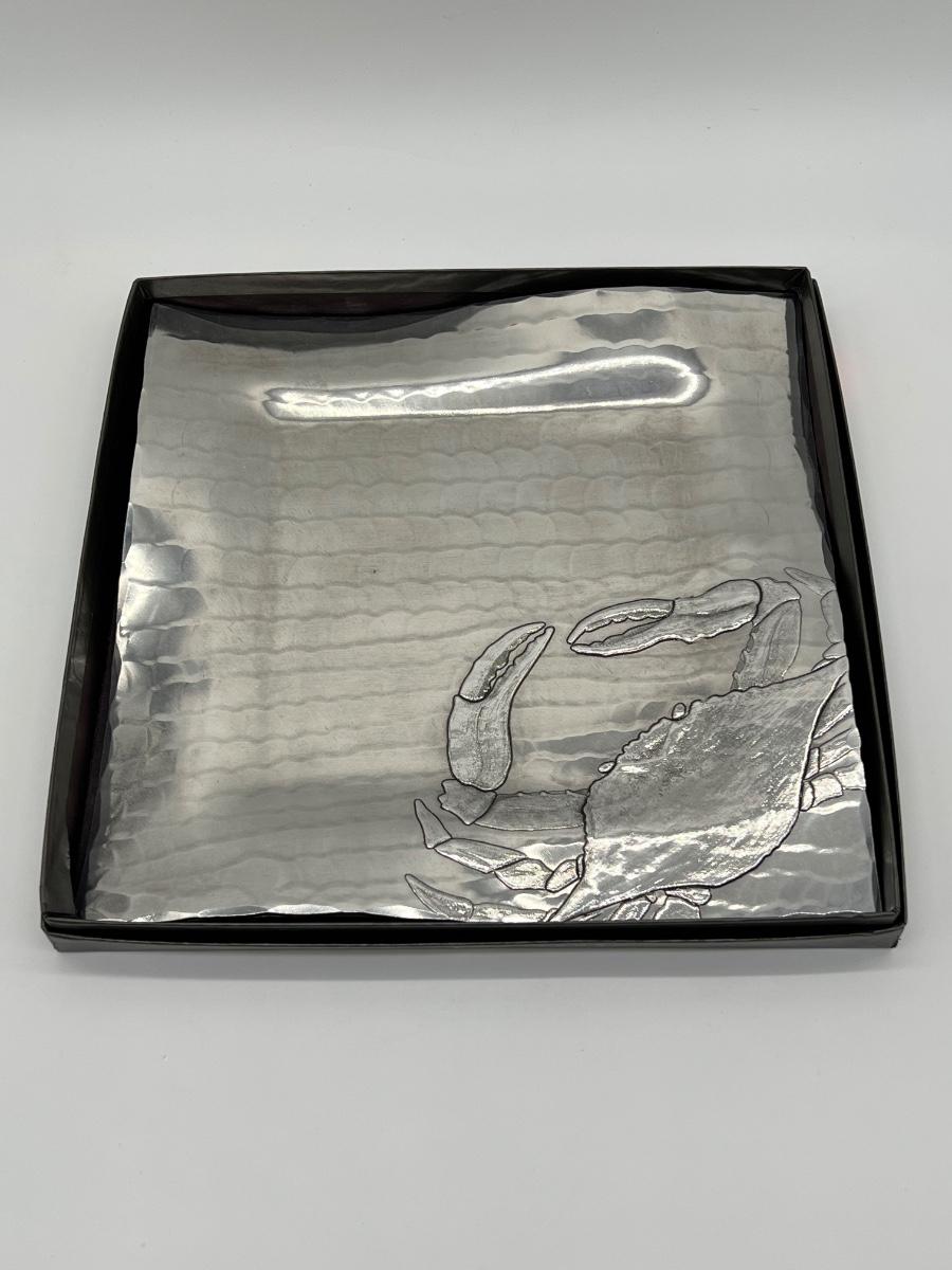 WENDELL AUGUST ~ Square Pewter Crab Snack Plate / Tray ~ NIB