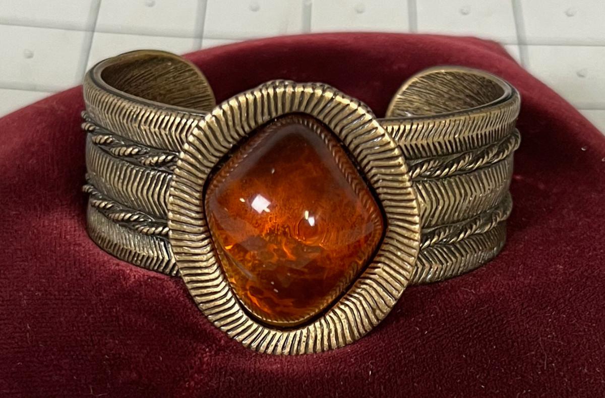 Wendy Gell Amber and Bronze Cuff Bracelet - Statement Piece