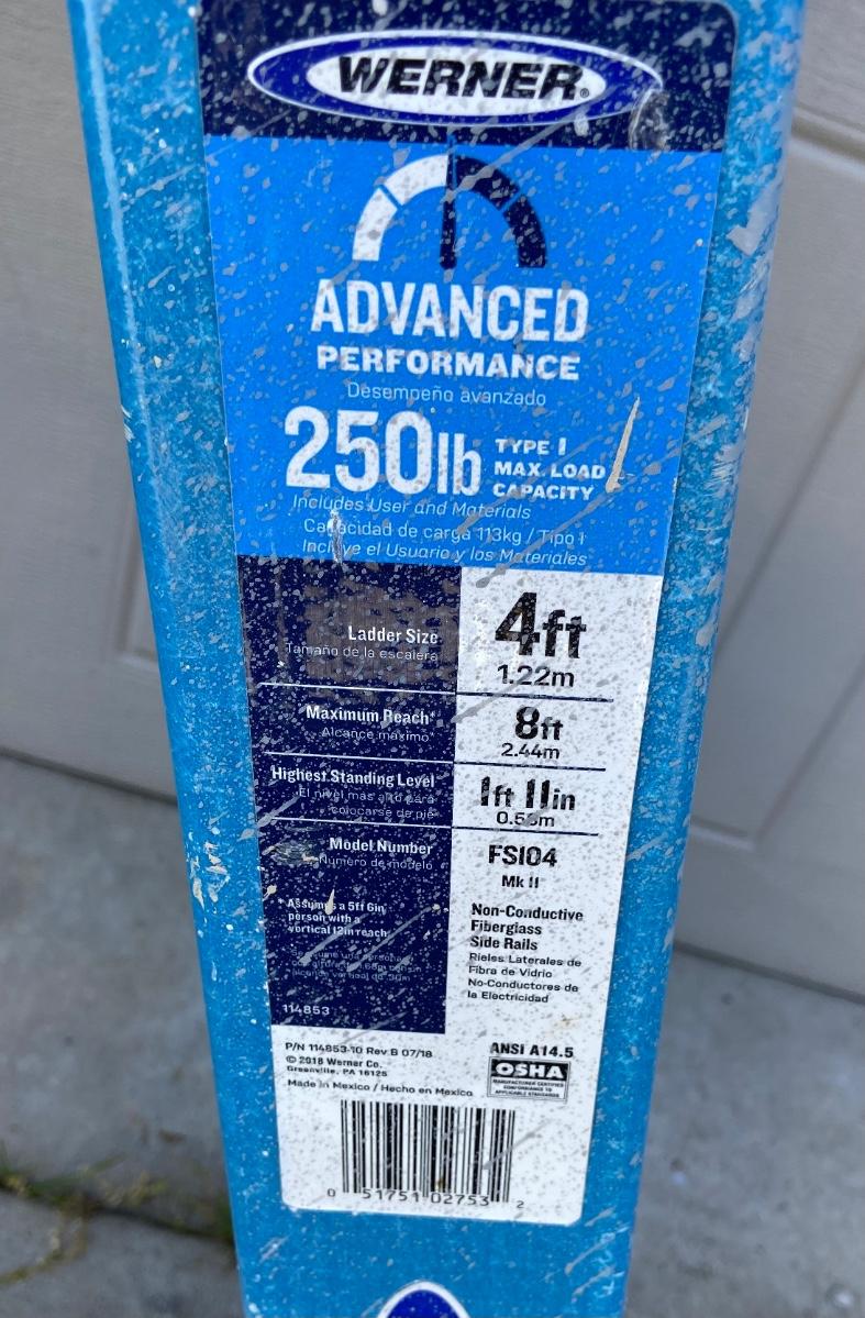 WERNER 4 FT FIBERGLASS STEP LADDER