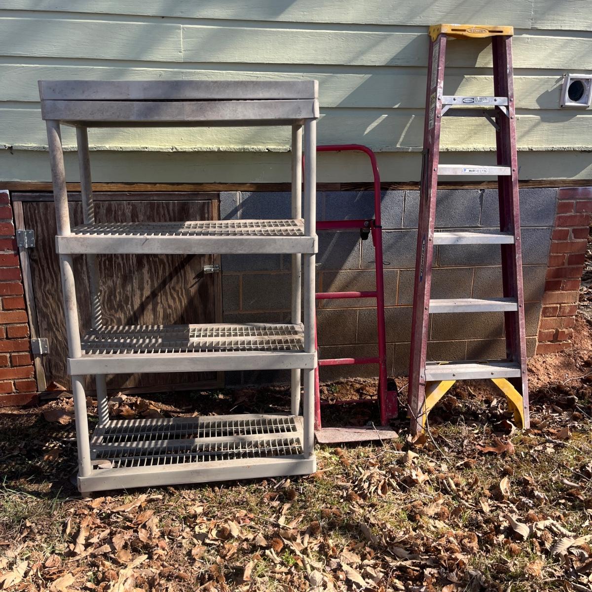 Werner 6’ Ladder, Hand Truck & Plastic Shelving Unit (Y-MG)