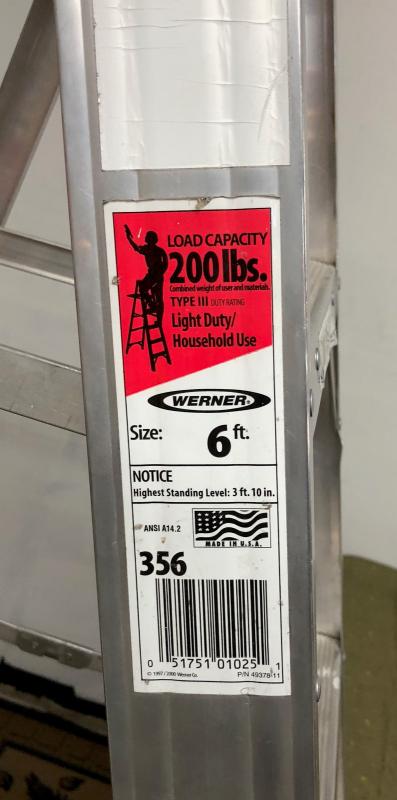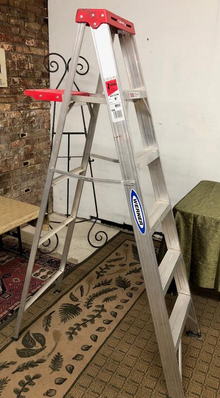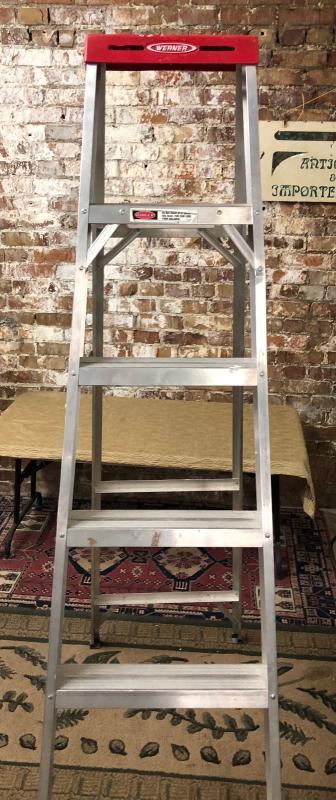 Good used condition on this light-duty 6ft aluminum step ladder from Werner...Red top...