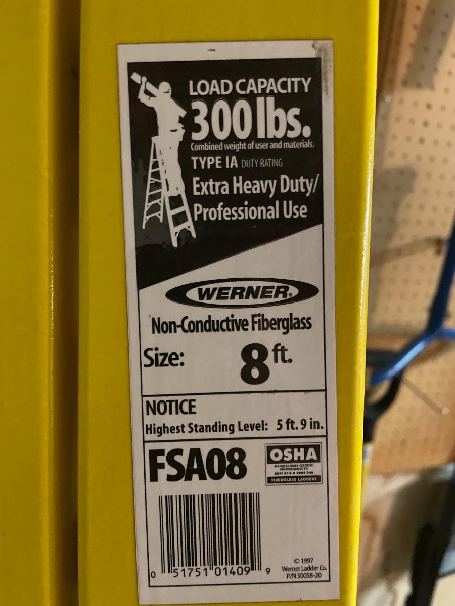Werner 8 ft fiberglass ladder holds up to 300lbs