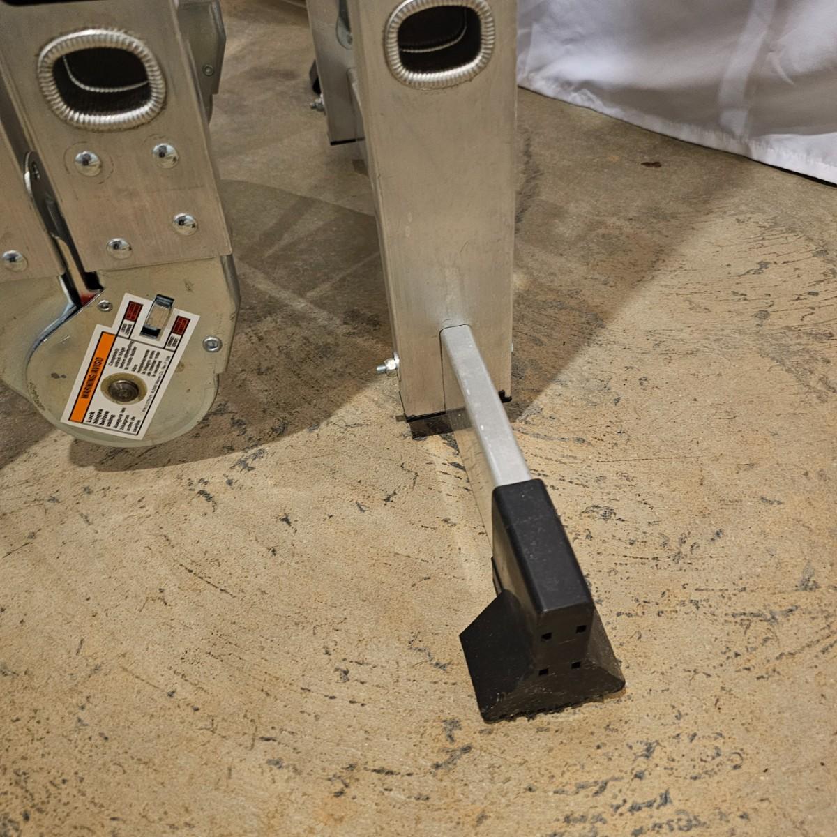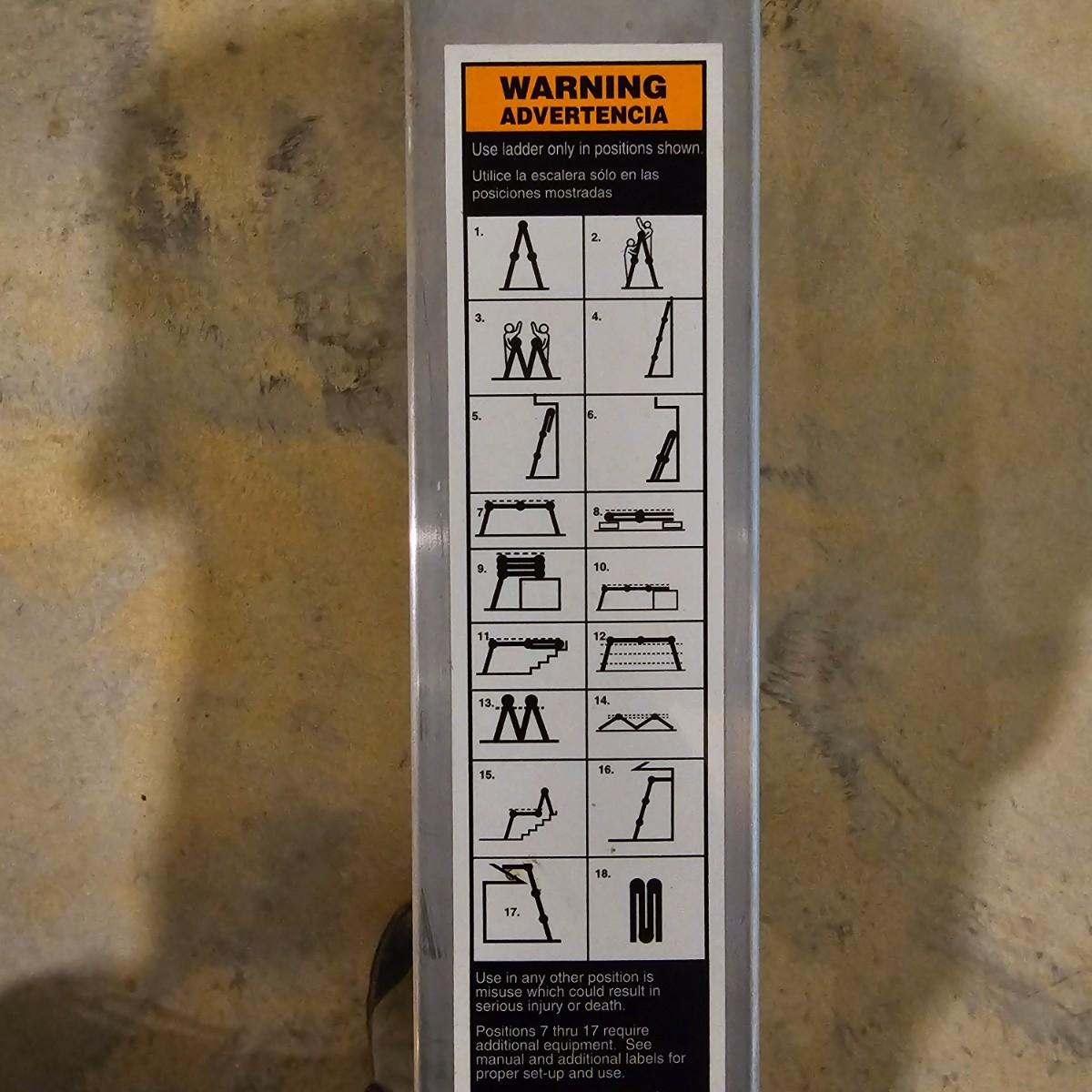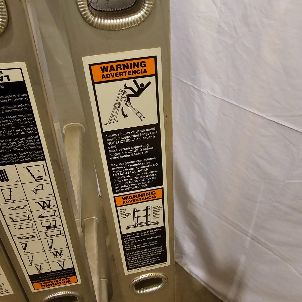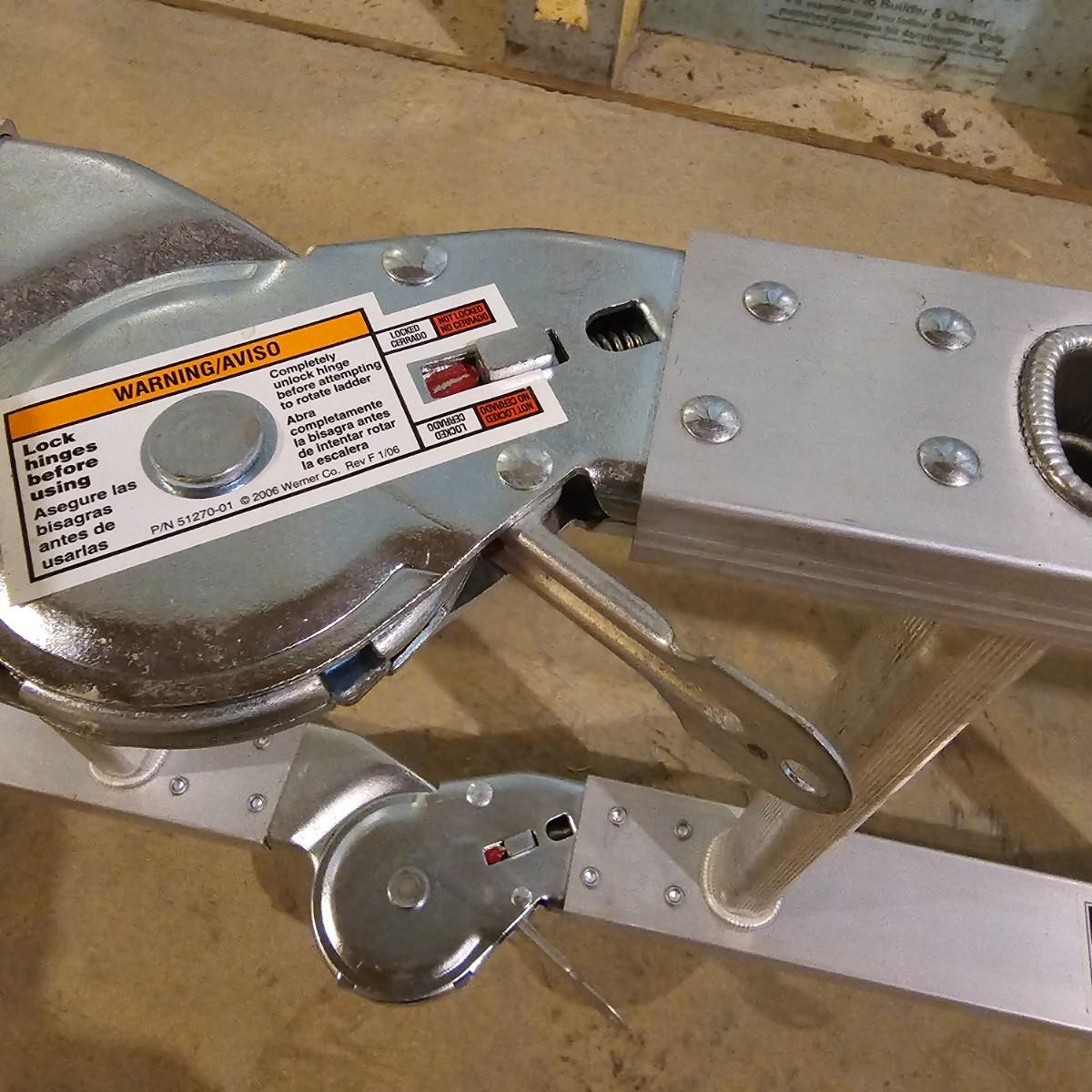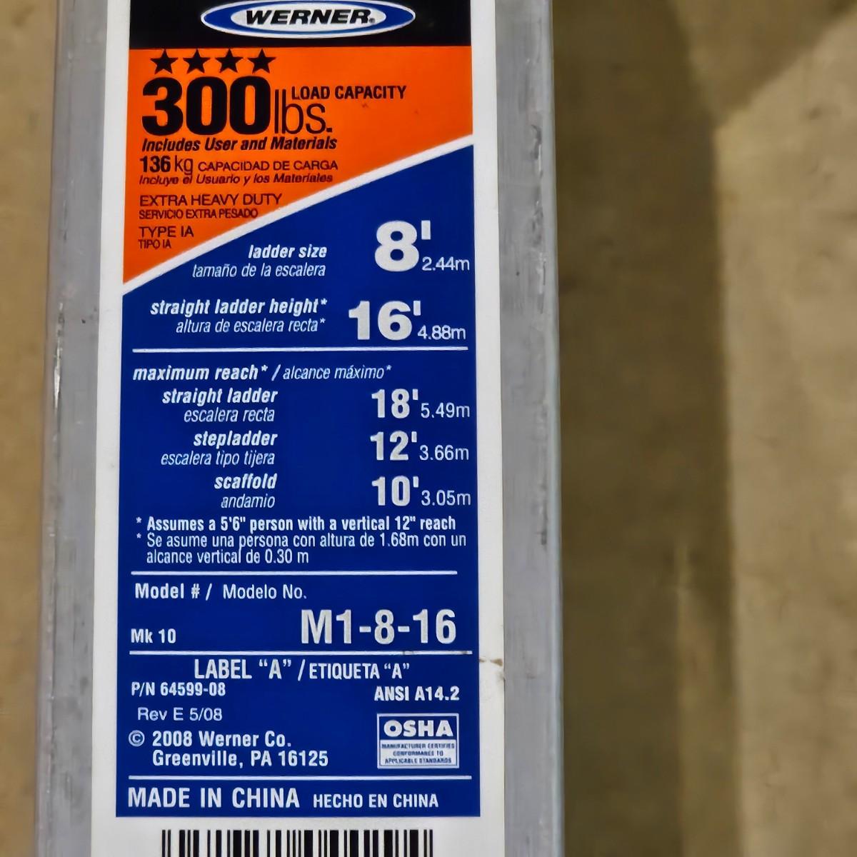 Multiple uses and positions available with this Werner extension ladder. Use as ladder, scaffold, more. Folds flat for storage at 29" x 11" x 52"H. Fully extends to 16 feet. Has snap lock safety paddles at each joint to securely hold ladder in position and rubber feet on bottom bar. See photos for details. Local pickup only.