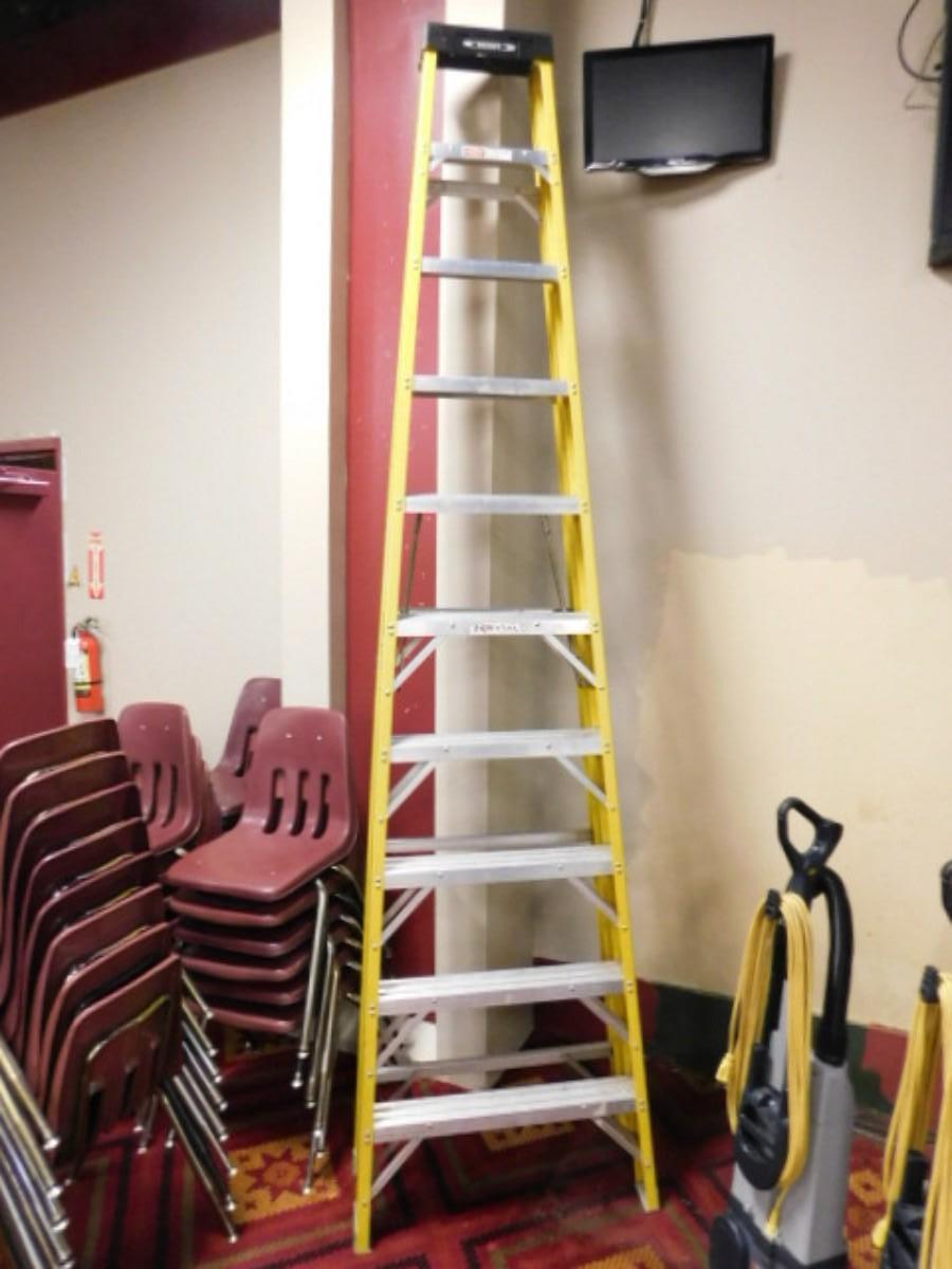 Werner Fiberglass 7' Contractor's Ladder Expect some wear or scratches to finish. Shipping option available via freight or local mover at Buyer's expense. Buyer must have all shipping scheduled within the stated dates and times of pickup. Recommended local mover is Beaty Bros. Moving 828-201-2982