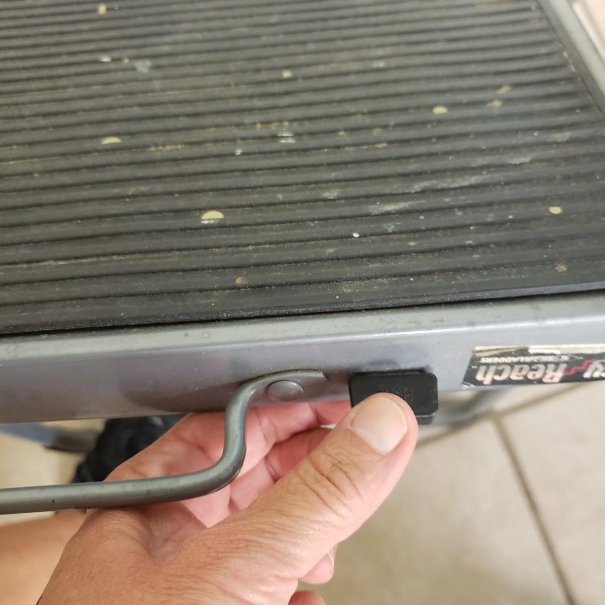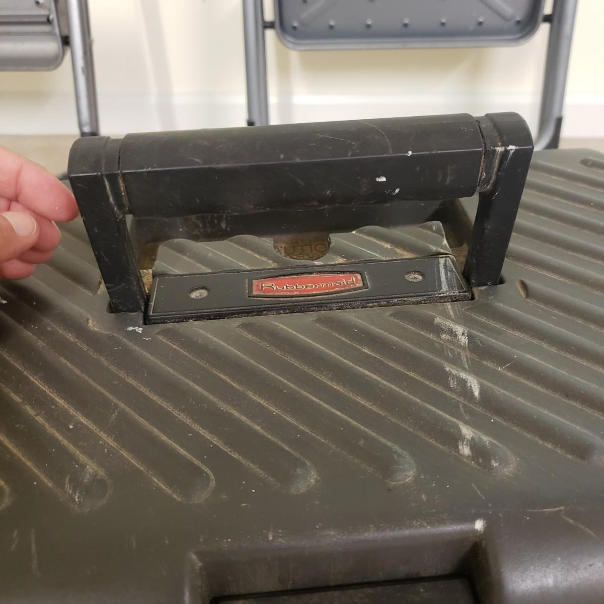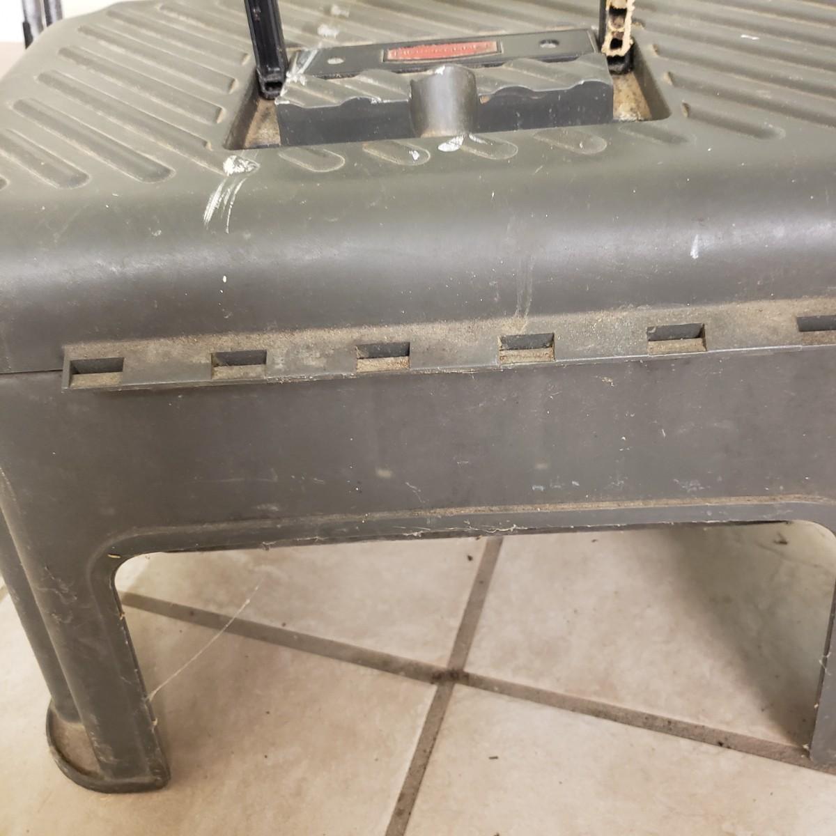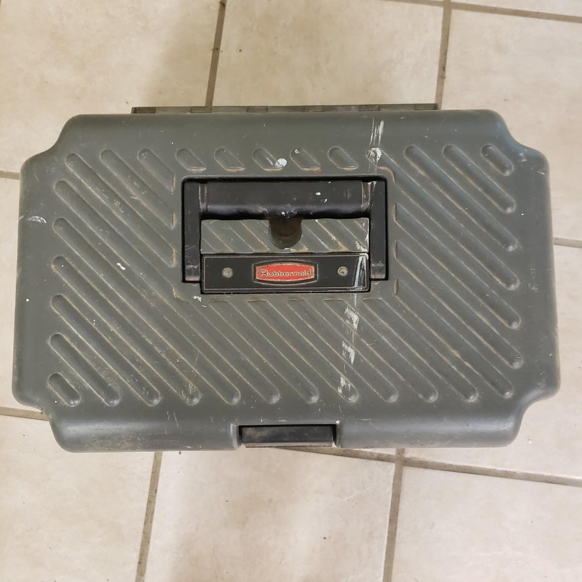 This lot contains three step ladders. The Werner step ladder made of metal can hold up to 200 pounds, see picture for ladder dimensions. It has an easy release bar in red. The Gorilla ladder, made of metal measures 18" x 15" x 36" H unfolded. It also has an easy fold up black button. The Rubbermaid step ladder measures 18" x 12" x 13" H and includes a hidden tool box with removable tray. There is paint on the Gorilla and Rubbermaid ladders, but does not impede its use.