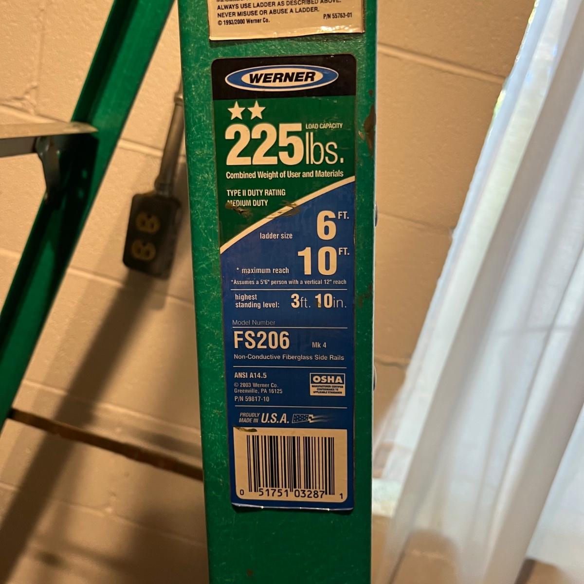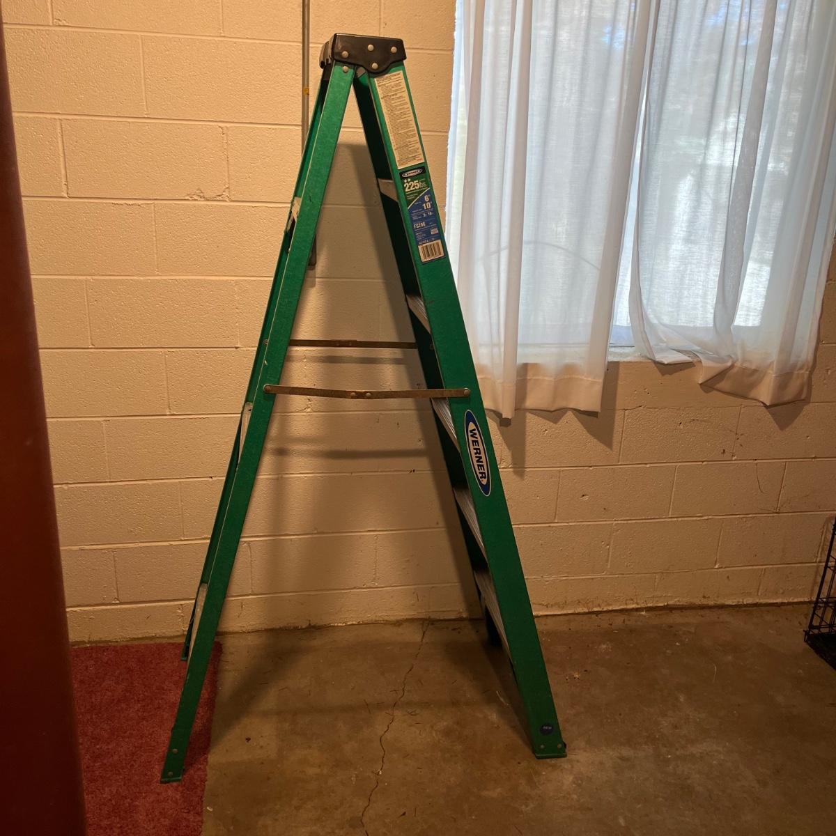 Lot includes a six foot fiberglass Werner step ladder in excellent condition.