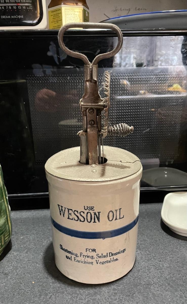 Wesson Oil Crock With Beater