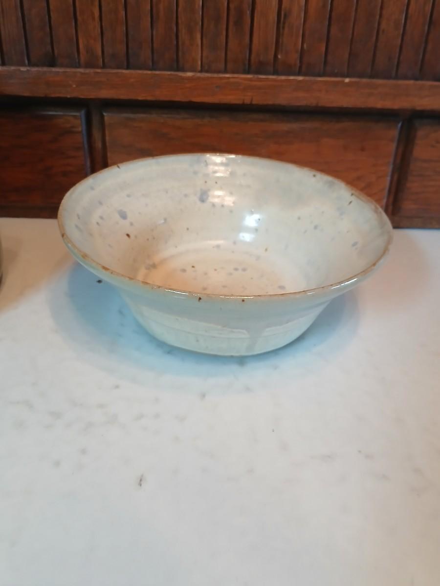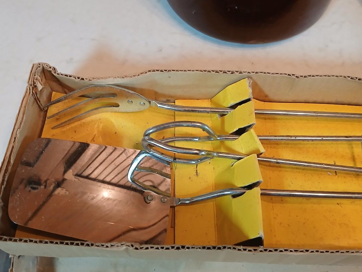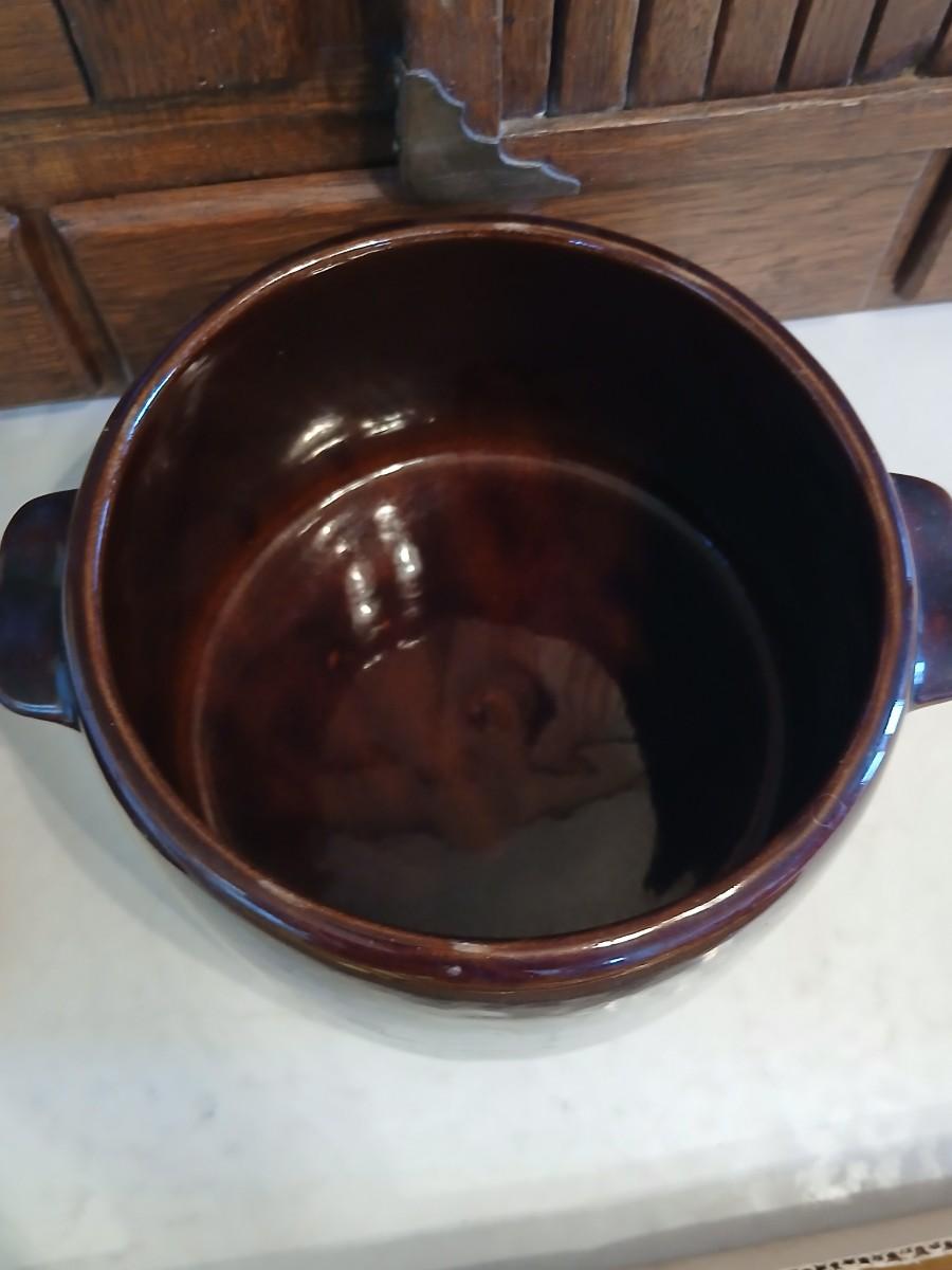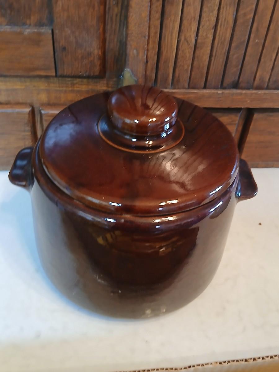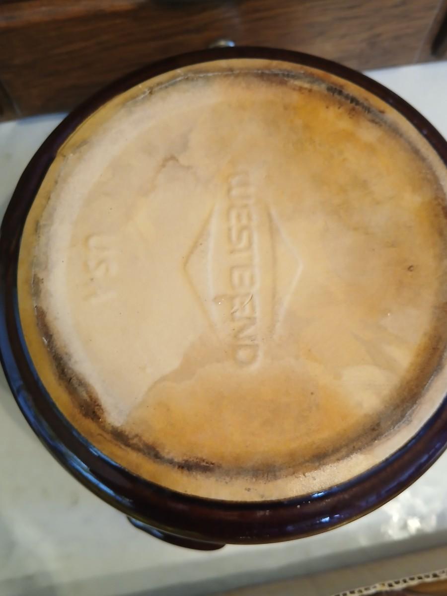 West bend bean pot - Signed Pottery bowl and a bbq utensil set