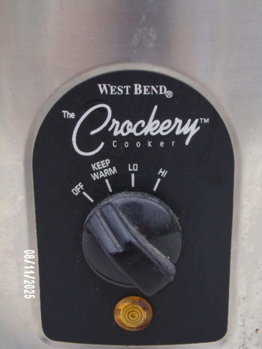 West Bend Crockery Slow Cooker. Est. to be about 6 to 7 qt. Untested.