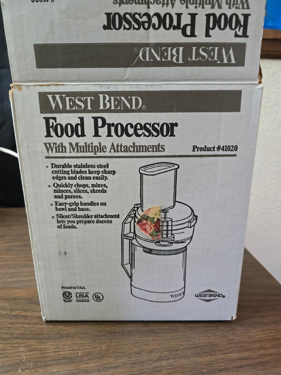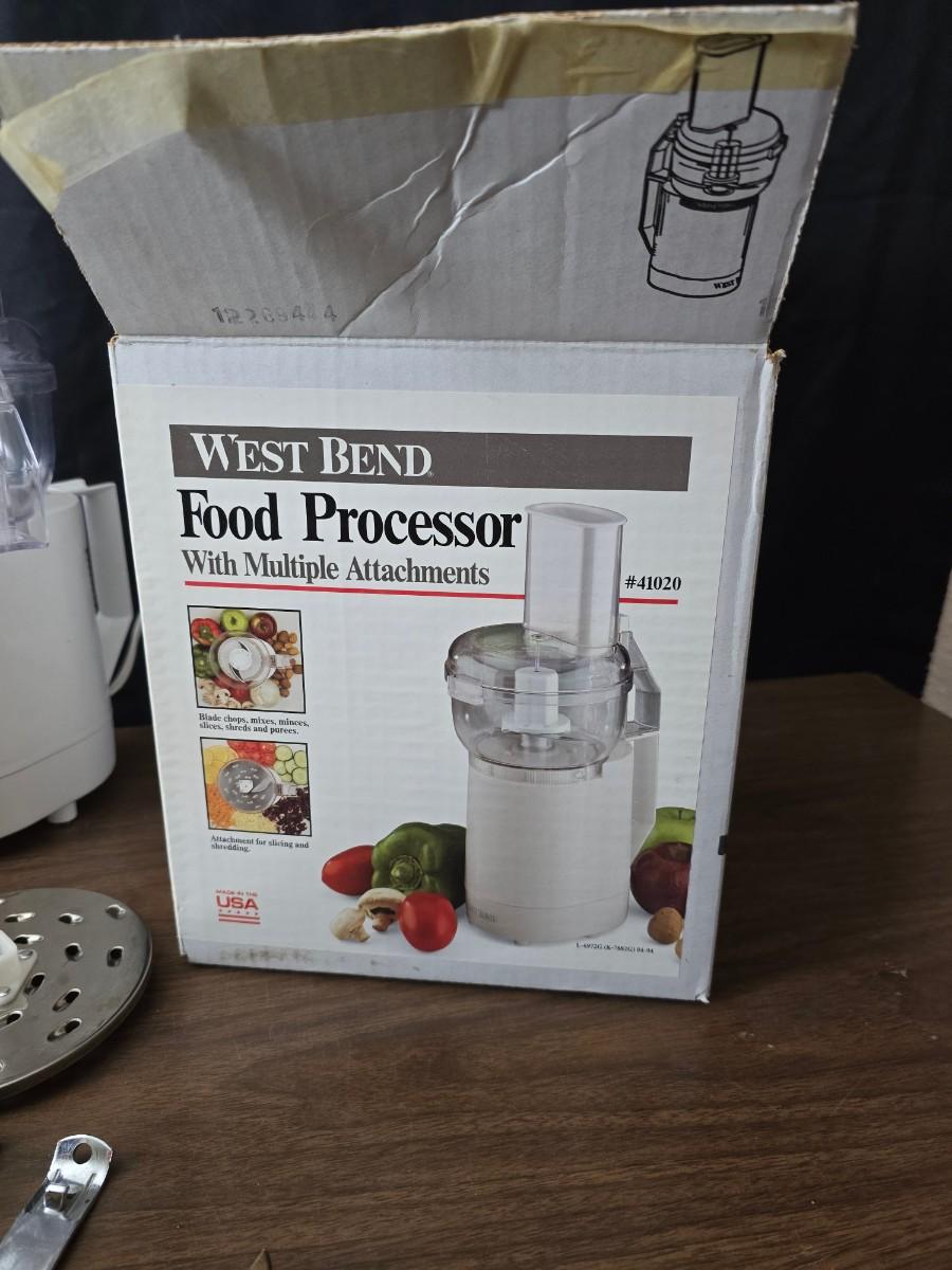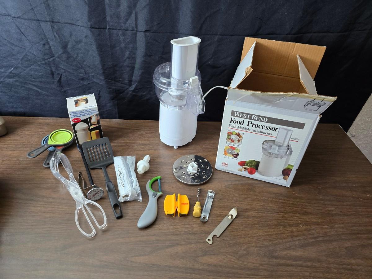 West bend food processor with multiple attachments - and a handful of Kitchen utensils
