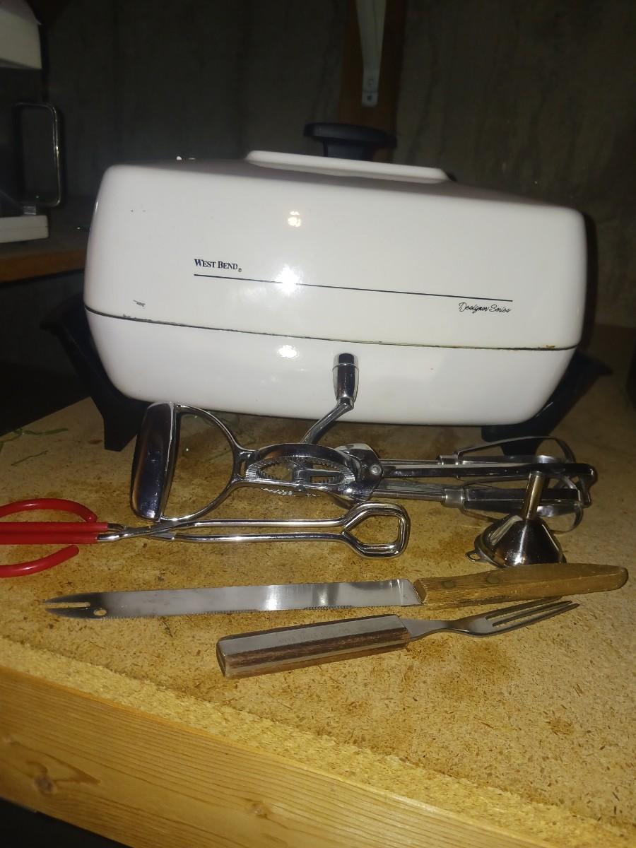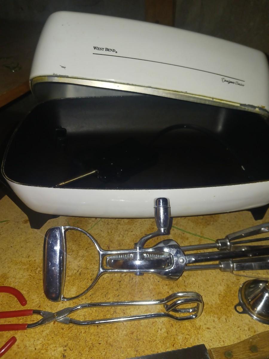 WEST BEND ELECTRIC SKILLET, HAND MIXER, COOKING UTENSILS