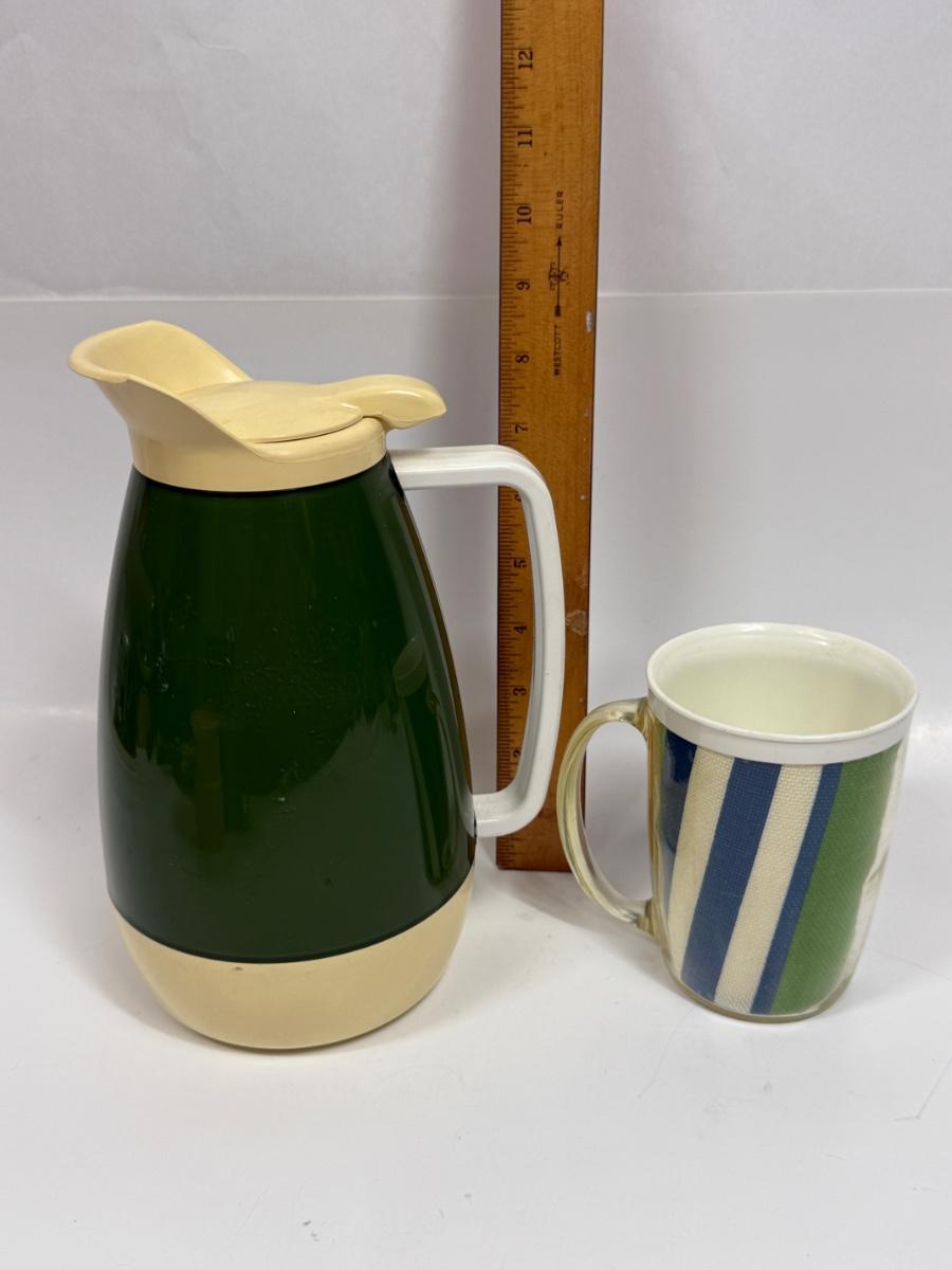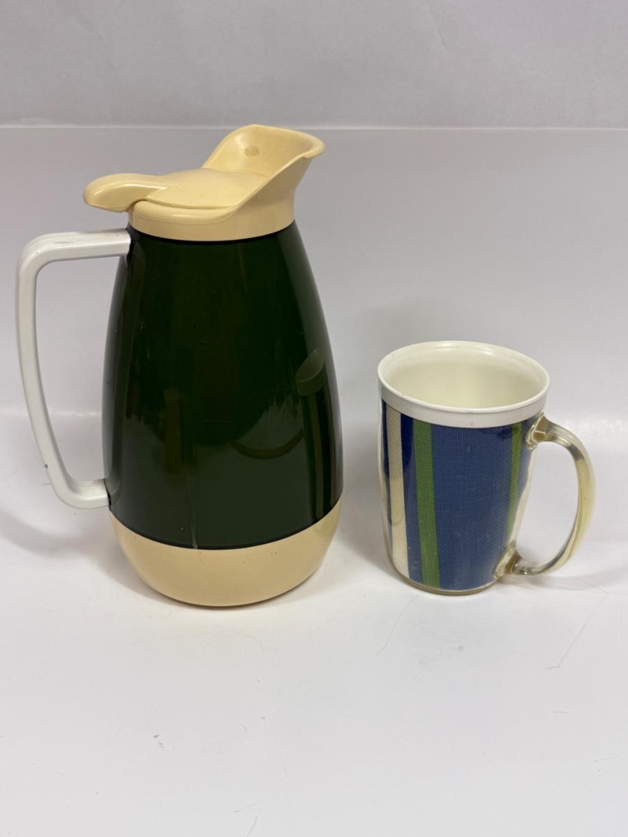 West Bend Termo-Serv Coffee Carafe & cup mug - vintage plastic