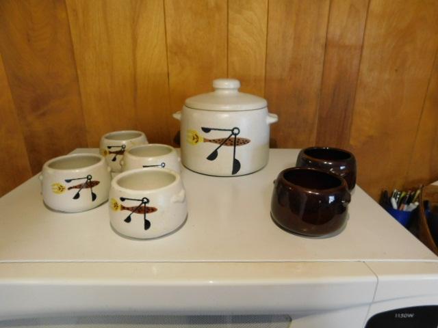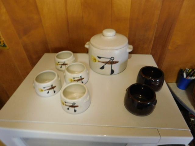 West Bend USA Ceramic Bean Pot with 6 Serving Cups