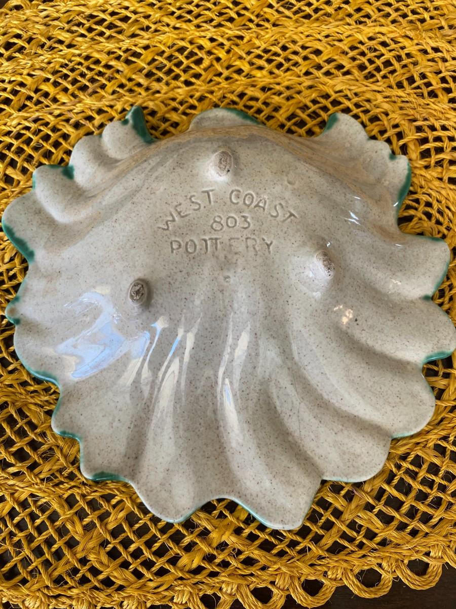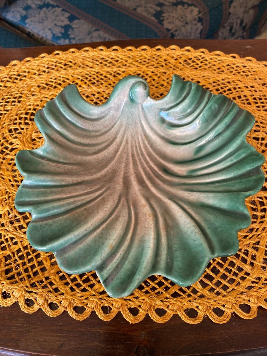 Vintage West Coast Pottery Footed Shell / Leaf Dish