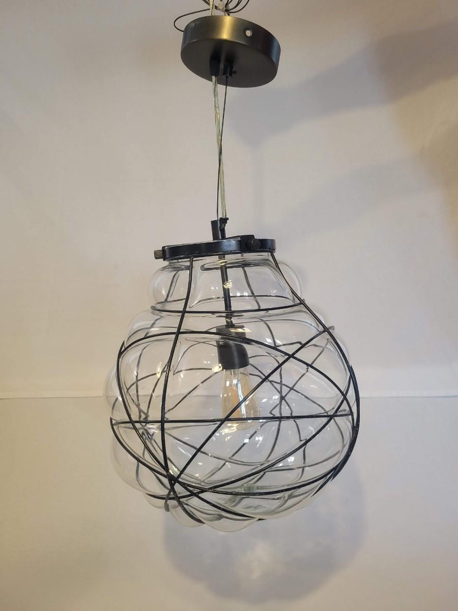 There are some minor scuffs on the glass and trim, but they are not noticeable from the distance the light hangs.