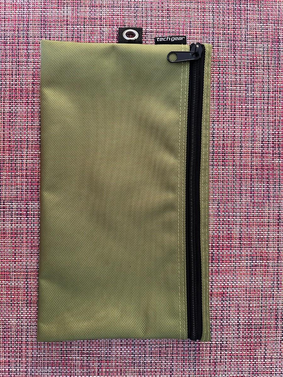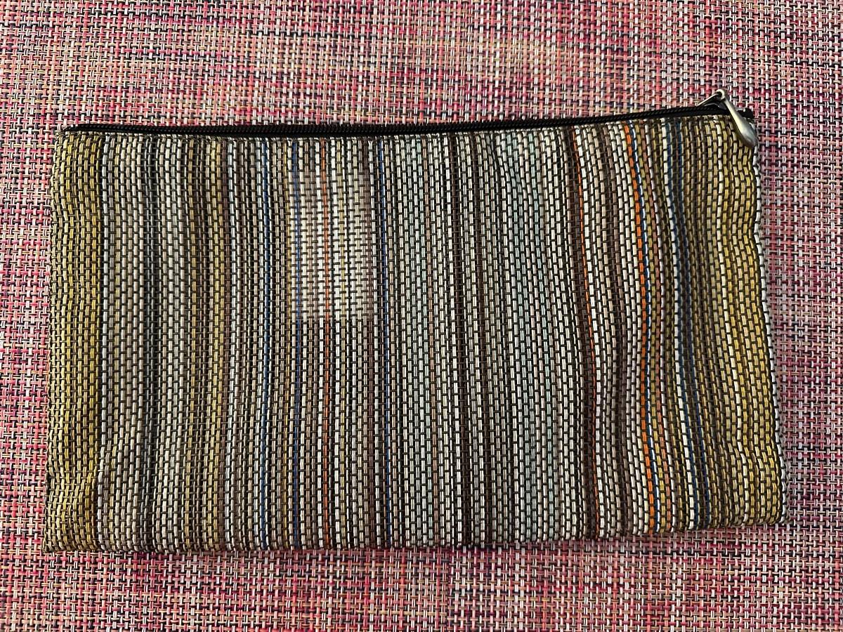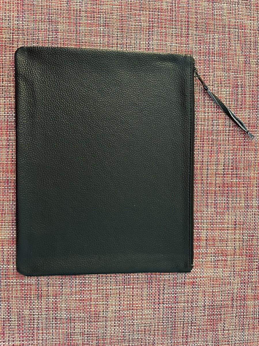 1 Black Leather Zipper Pouch from West Elm w/Box 9"x 11.5", Orange Leather Zipper Pouch - possibly West Elm9"x 11.5", 1 tech gear Green zipper pouch 12"x 7", 1 Cumberland Concepts gray medium all purpose zipper bag 8.5"x 5", 1 Crate & Barrel chilewich Melange zip bag 10.75"x 6.23".