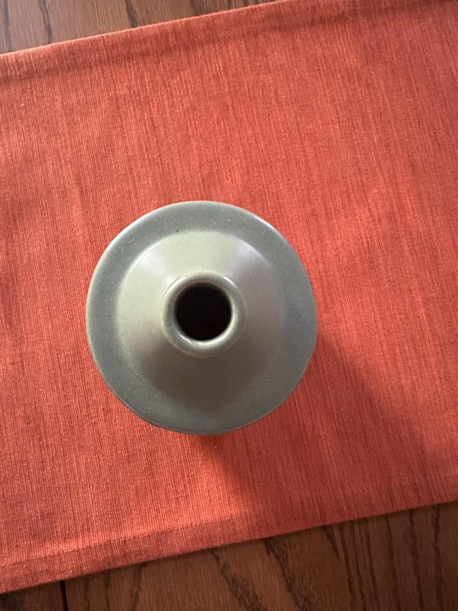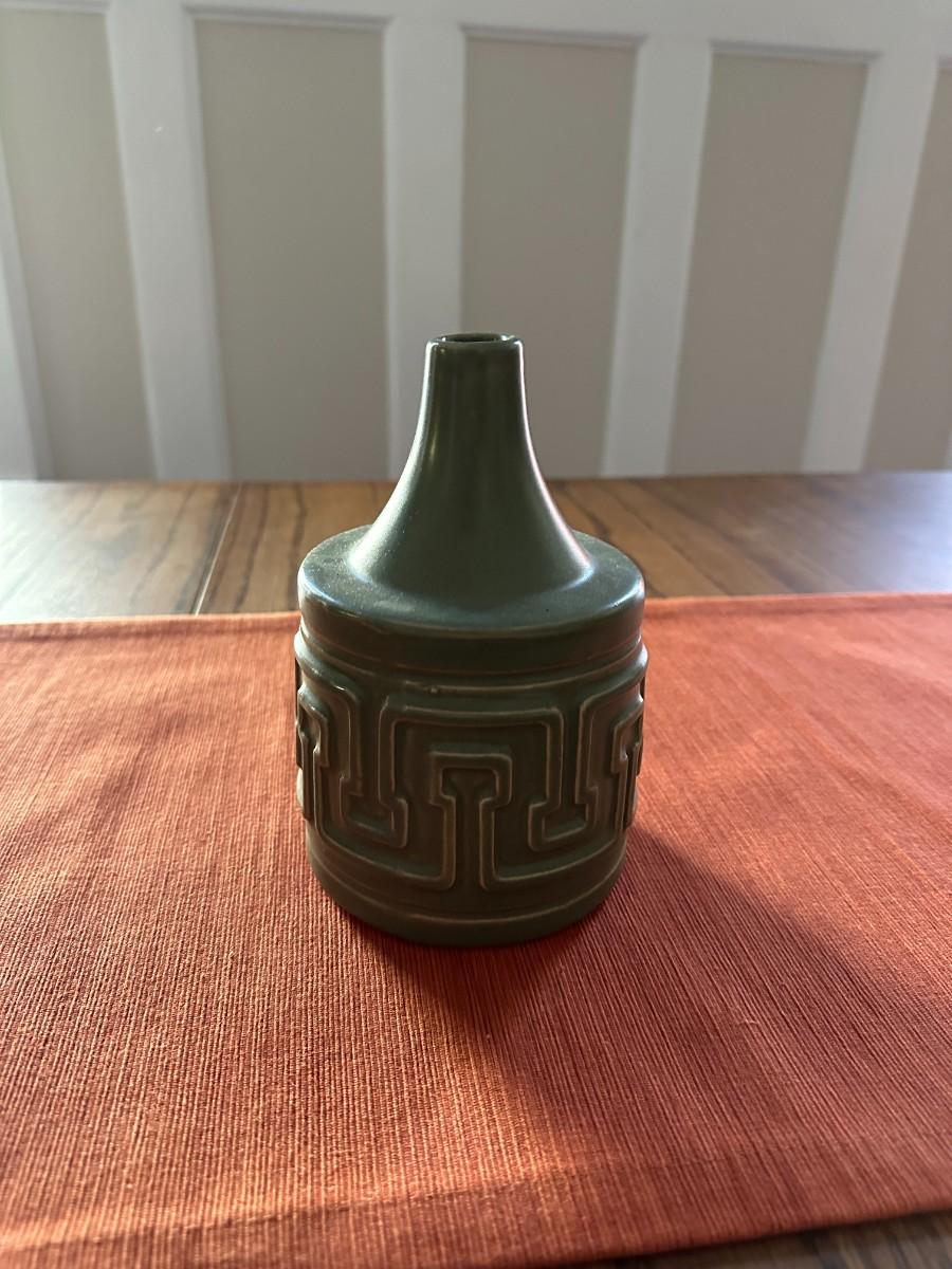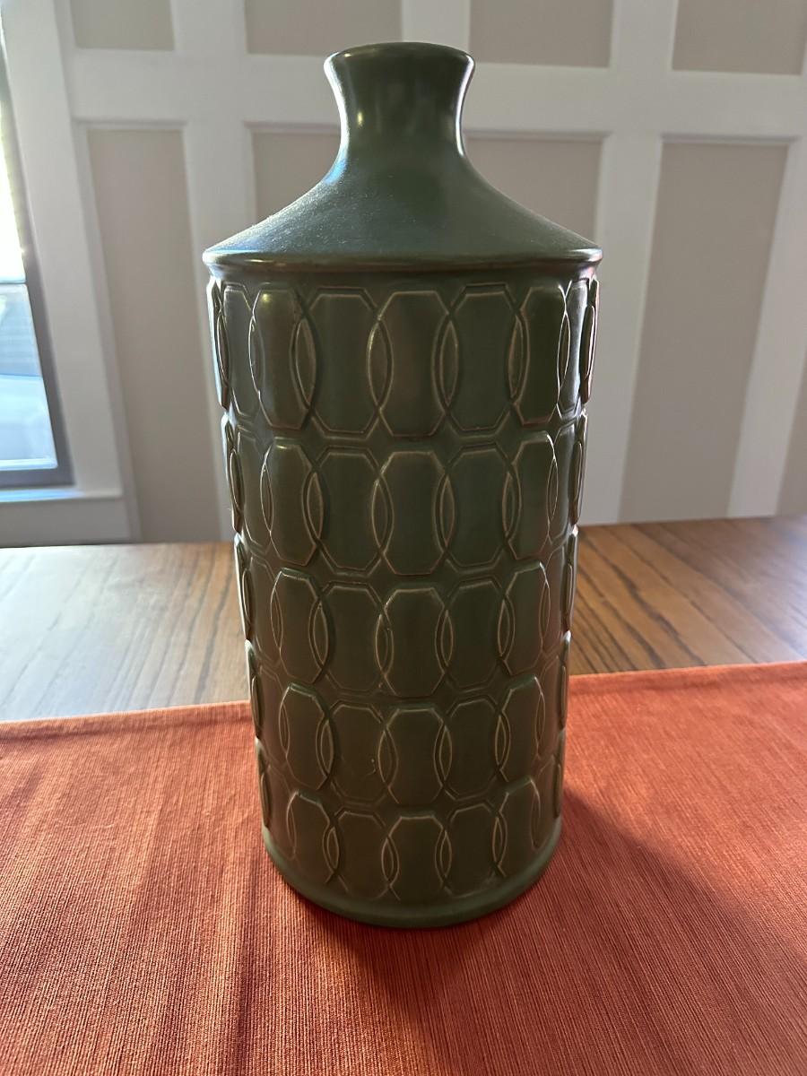 Set of 3 Green West Elm Pieces. Tall Vase 16"h, Small Vase 7"h & One Pot 6"h x 8"w
