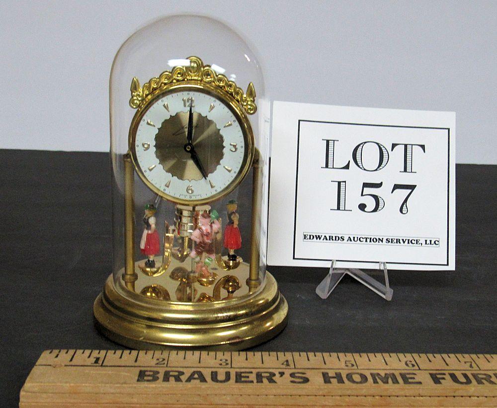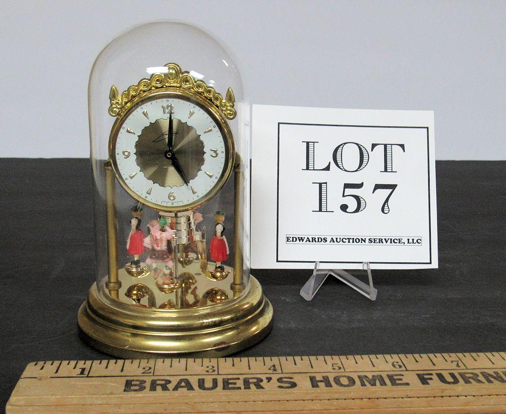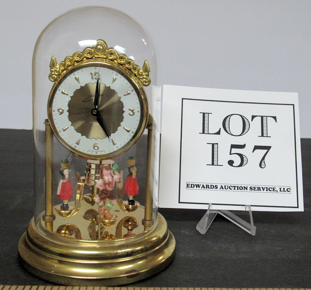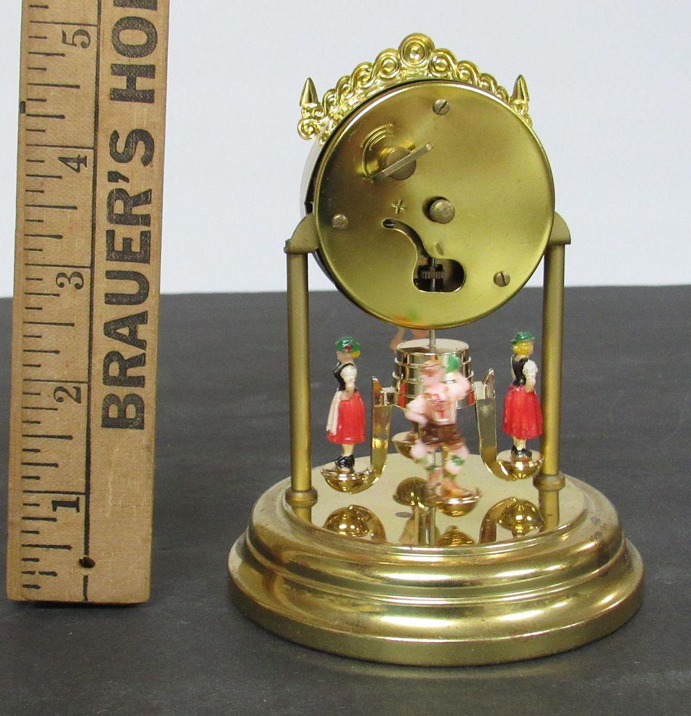 West German Wind Up Clock German Figures Spin, With Glass Dome