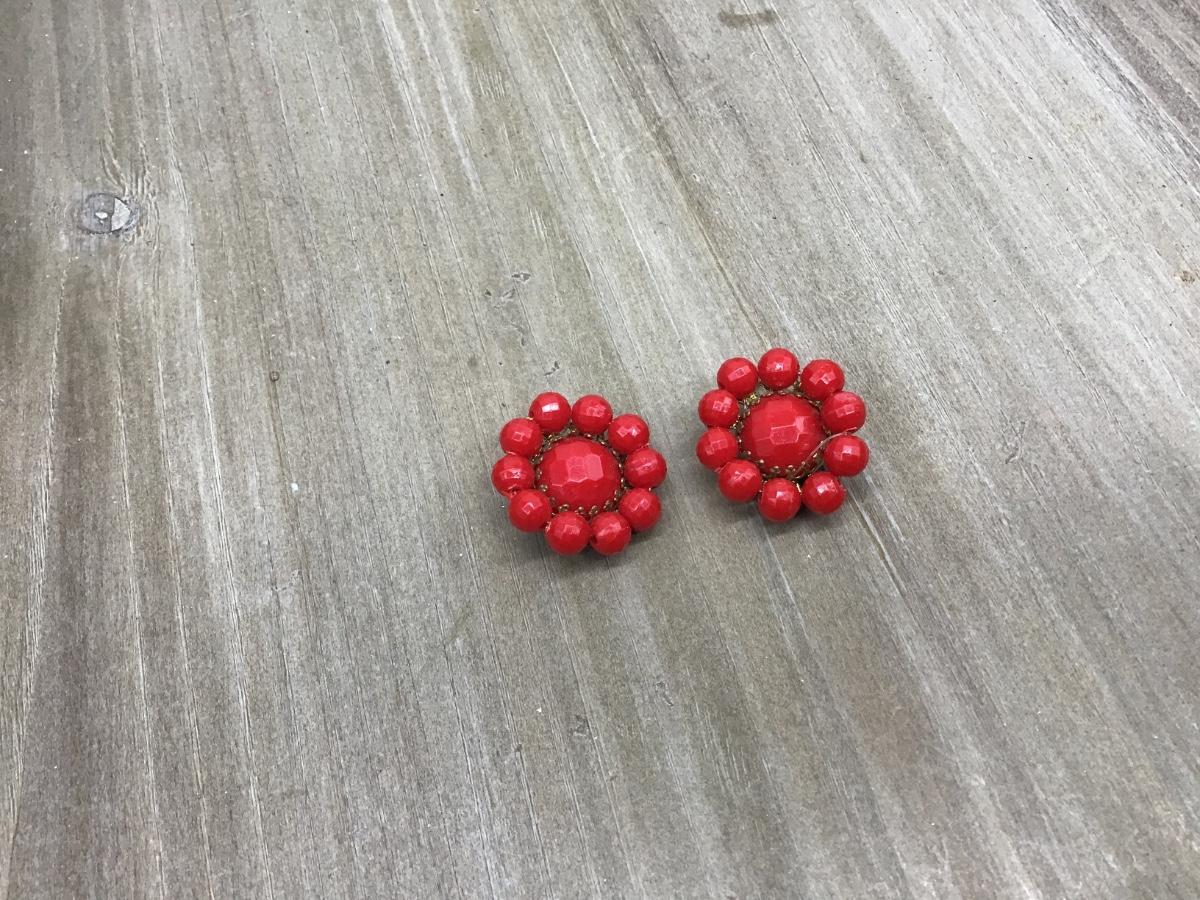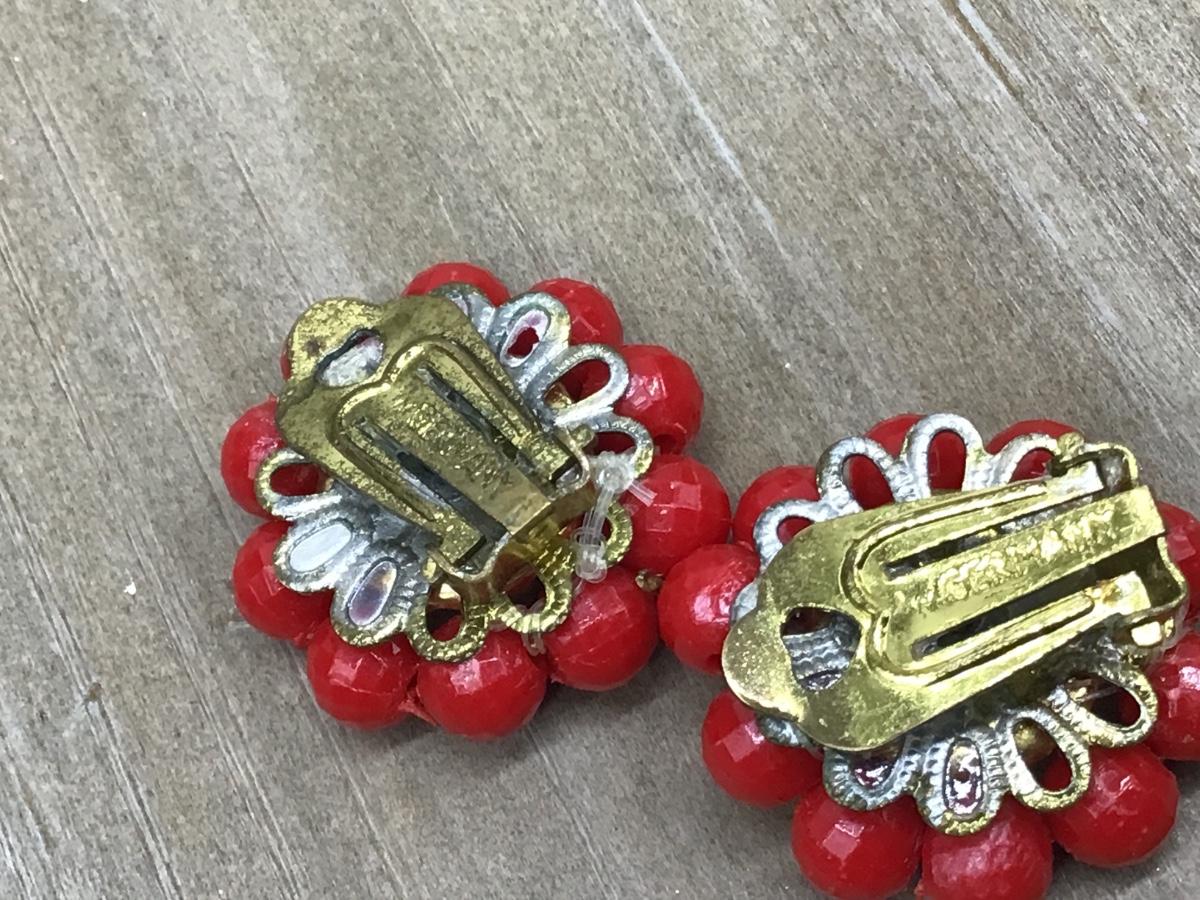 West Germany Faux Red Beaded Earrings