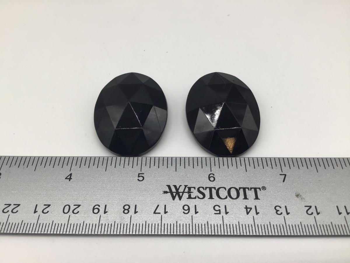 West Germany Vintage Black Onyx Glass Earrings. Marked
