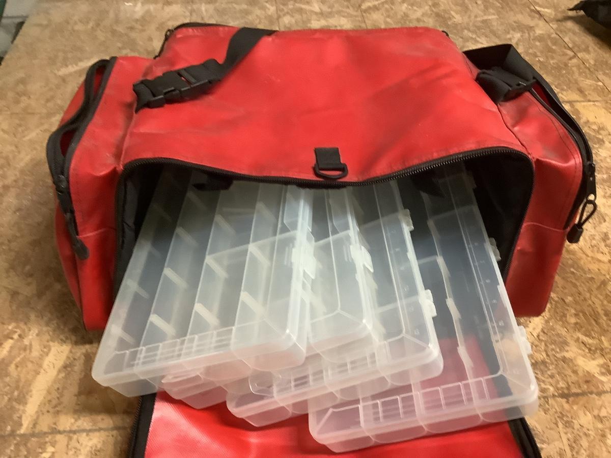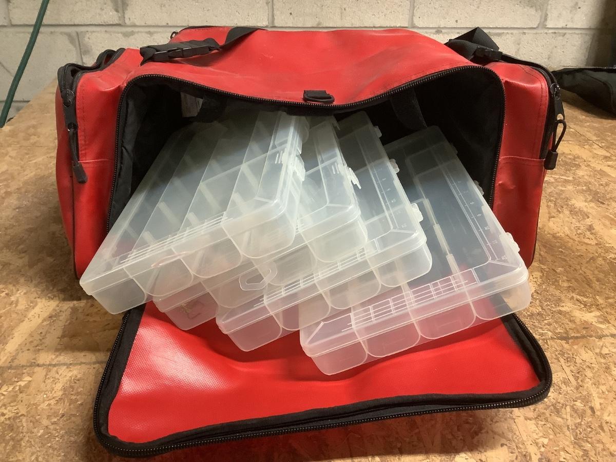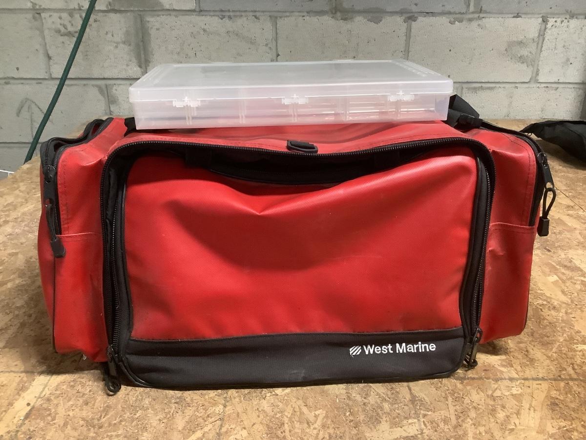 West Marine fishing box with 4 tackle containers