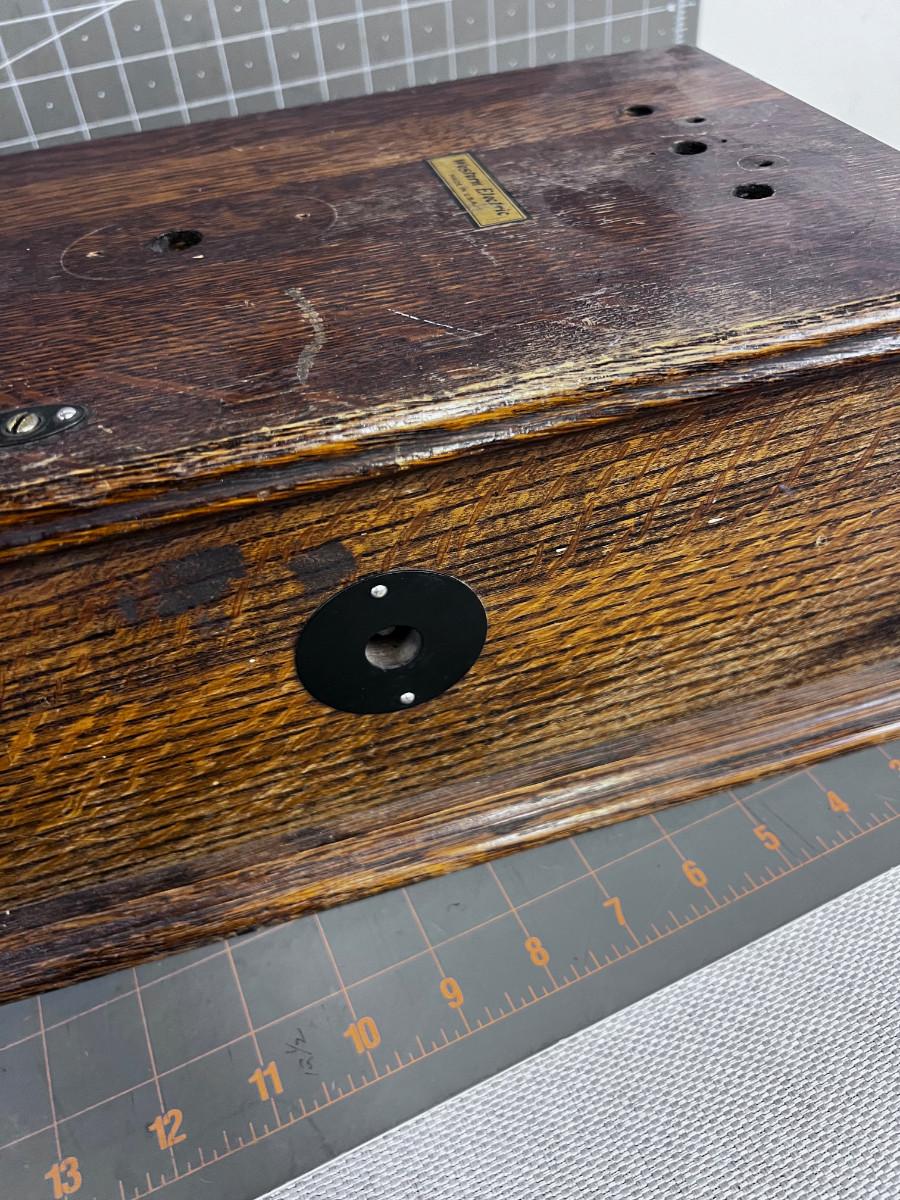 USED Antique Collectible! Just he wood Box. No Other Part Outer Mouth or Ear Parts. Some Guts. Framed. Boxing Fee of $75 Plus Shipping charges.