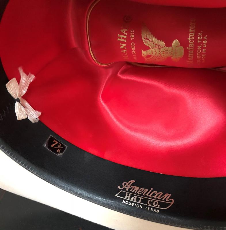 Light surface soiling on this pre=owned western xxxx quality felt from the American Hat Co of Houston, Texas...Size 7 3/8"...