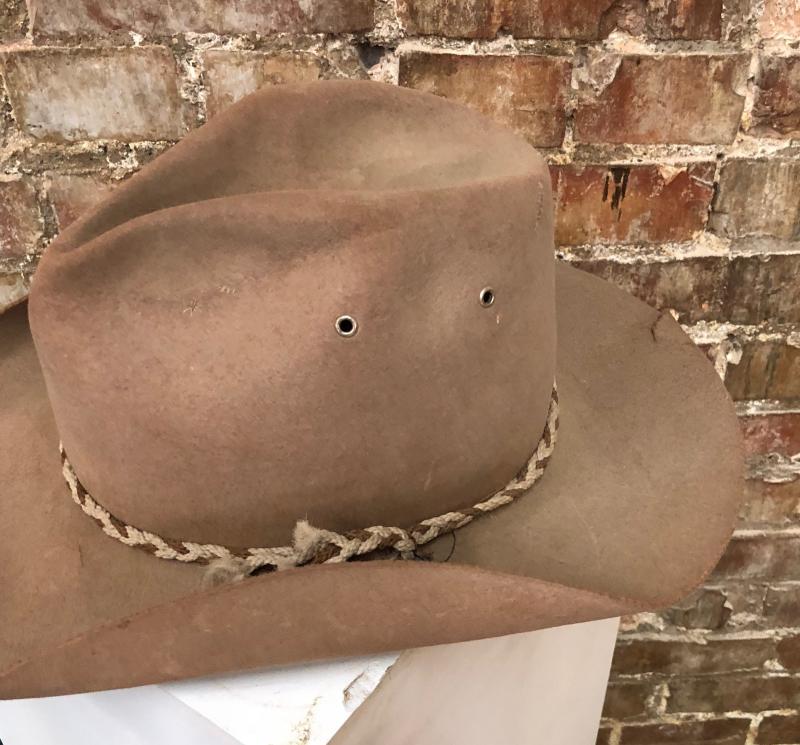 From J.W. Hats in Utah here is a western style men's hat with a lot of character..some use and age wear...Size 7 3/8....