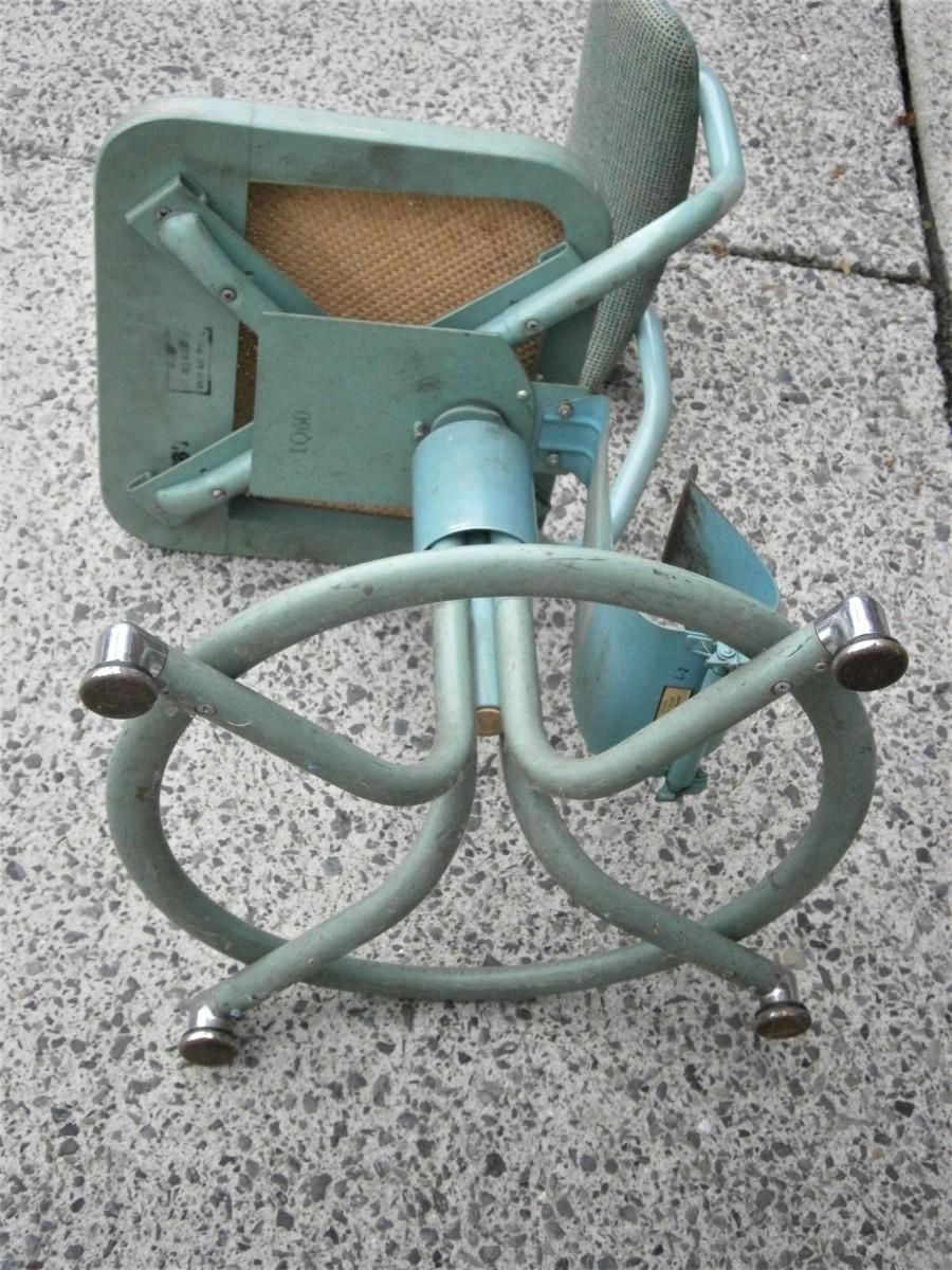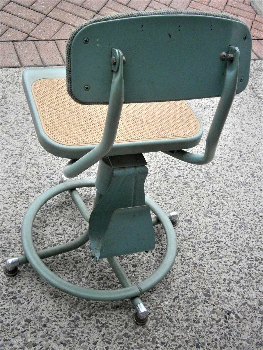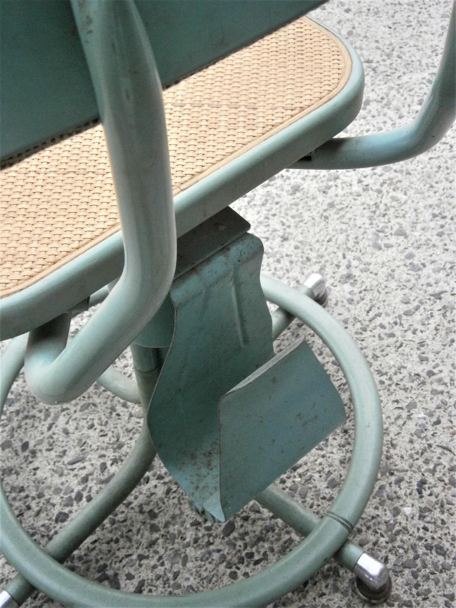 Mid Century Western Electric Telephone Operators Purse Holder Chair with pressed cane seat, 34 in. tall before adjusting height - turn seat to adjust height, very heavy steel tubular construction, from the mid 1900's, all original, cane still in good condition. PICK-UP only