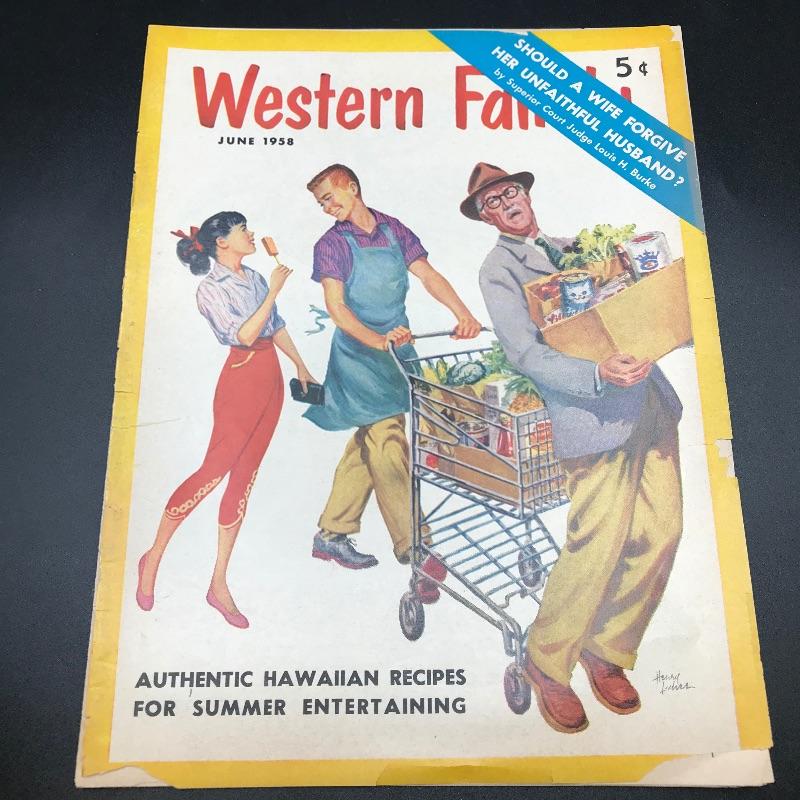 A fraction is a June 1958 edition of Western Family. Overall, the magazine is complete in that no pages are missing, however, the front and rear covers have separated.