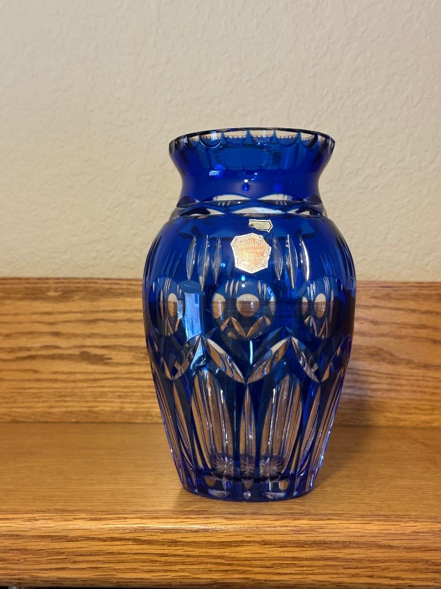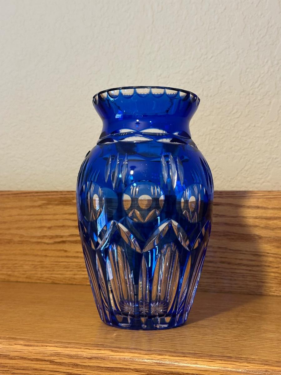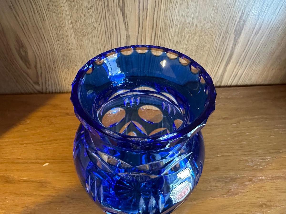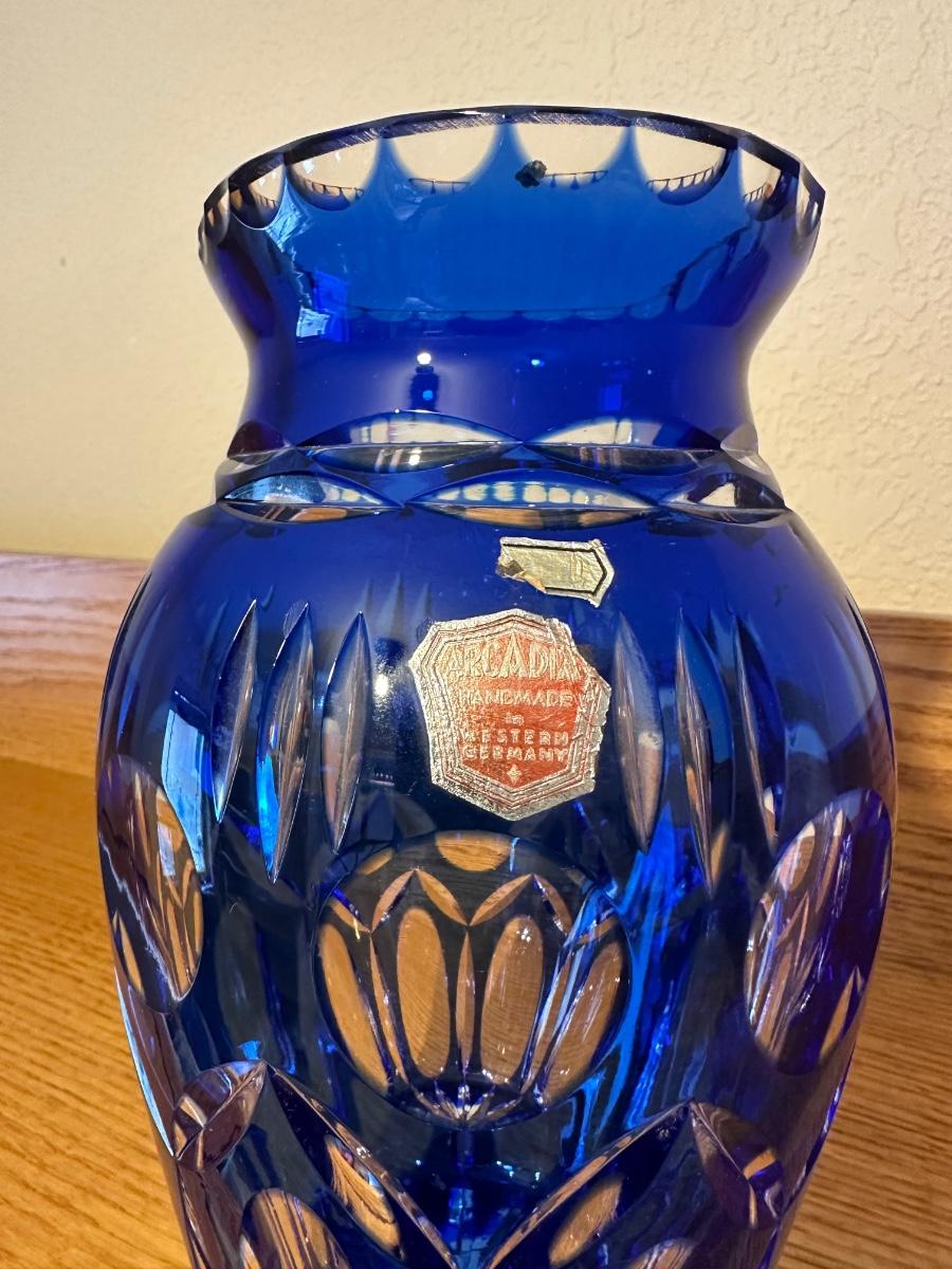 WESTERN GERMANY, COBALT BLUE CUT GLASS VASE